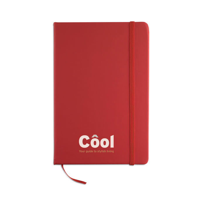 A5 notebook with hard PU cover. Casebound. 192 plain recycled paper pages (96 sheets). Matching elastic closure strap and ribbon page-marker. FSC®-certified | FSC MIX CREDIT, P7.1, FSC-C213206