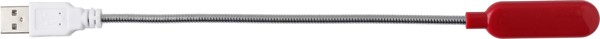 ABS and metal laptop keyboard light with flexible arm, three LED lights, and USB connector. Packaged in polybag.