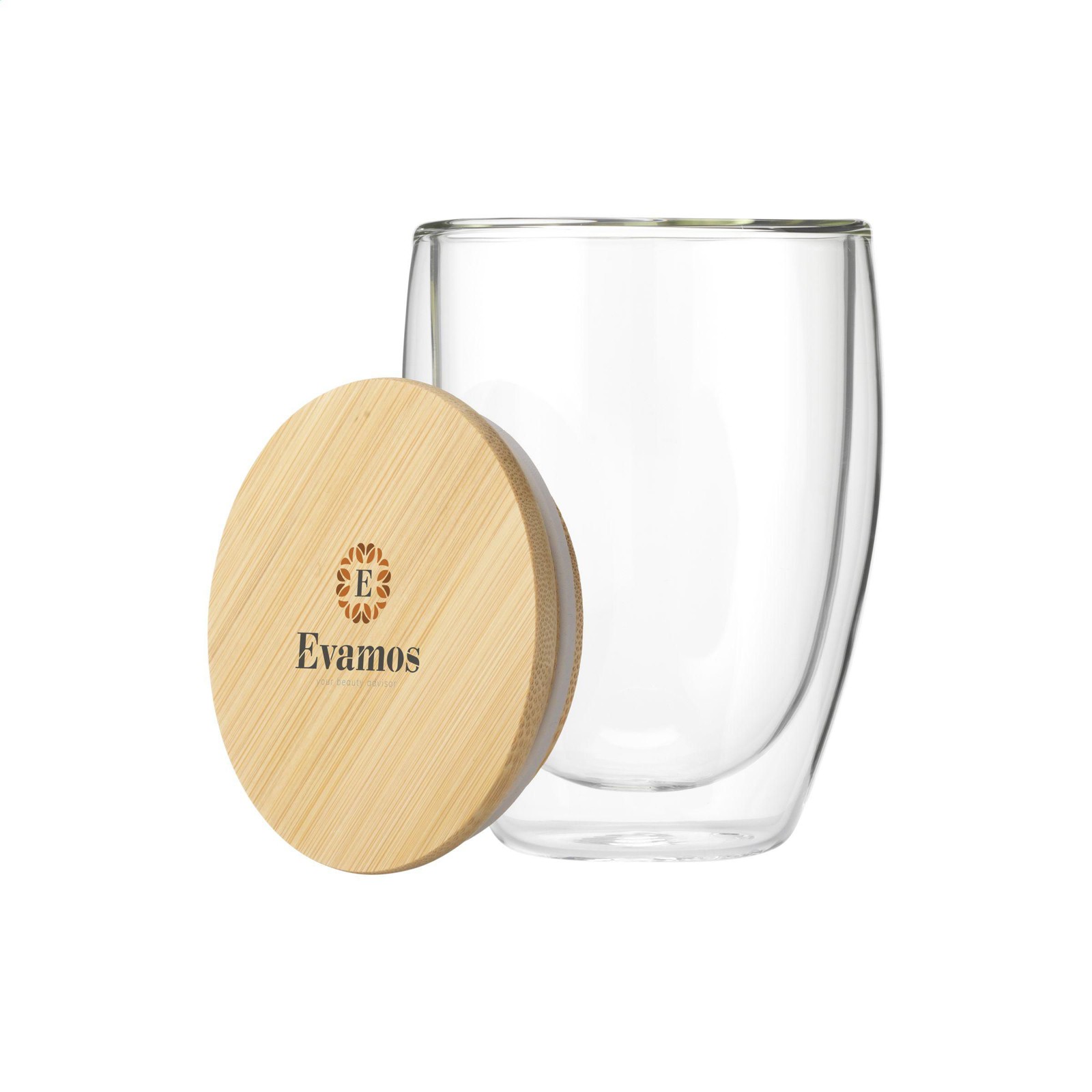 High quality double-walled glass. This clear borosilicate glass has a sleek and contemporary design with bamboo lid with silicone ring. An insulating layer of air forms between the heat-resistant glass walls. If you fill the glass with a hot drink, the outer wall remains cool and easy to hold. Not dishwasher-safe. Capacity 350 ml. Each item is supplied in an individual brown cardboard box.