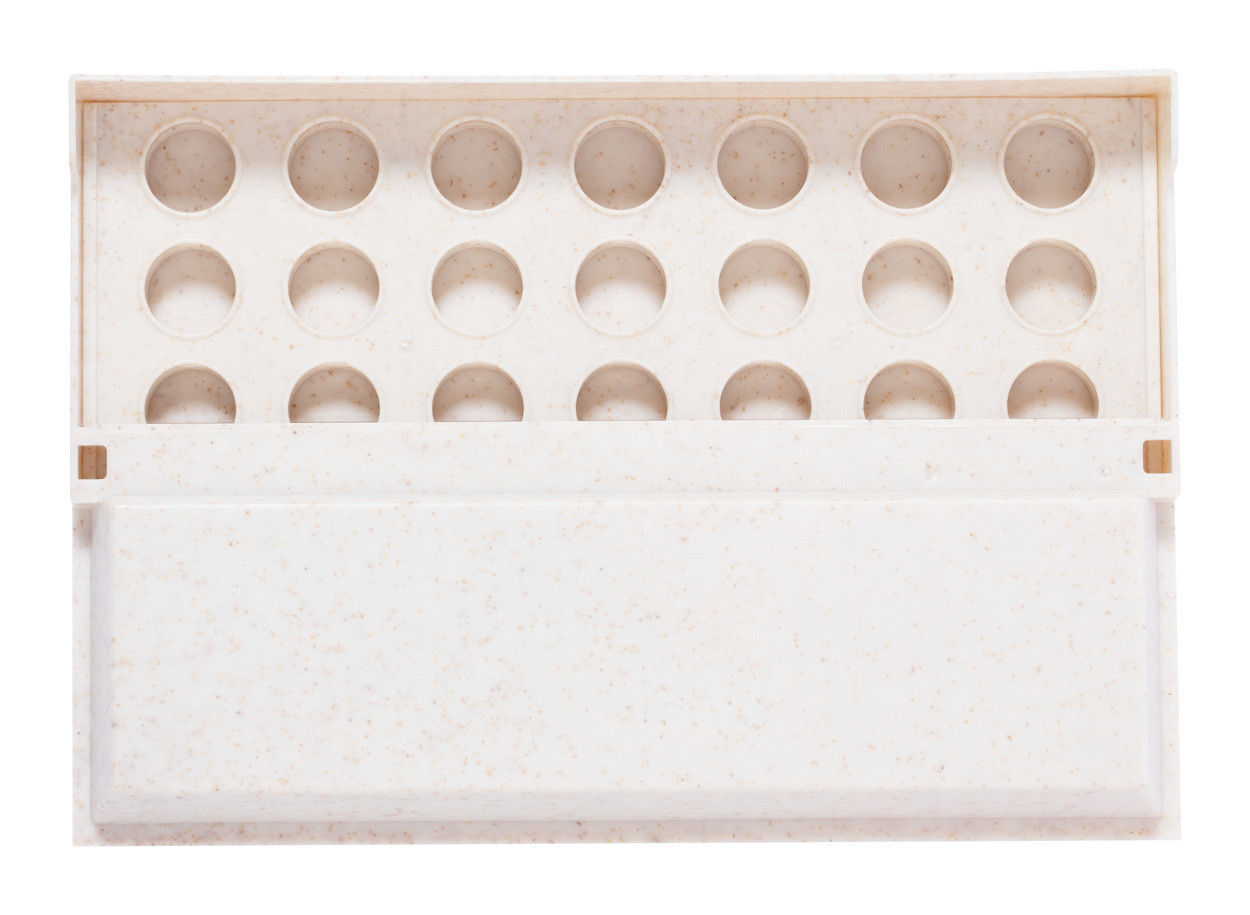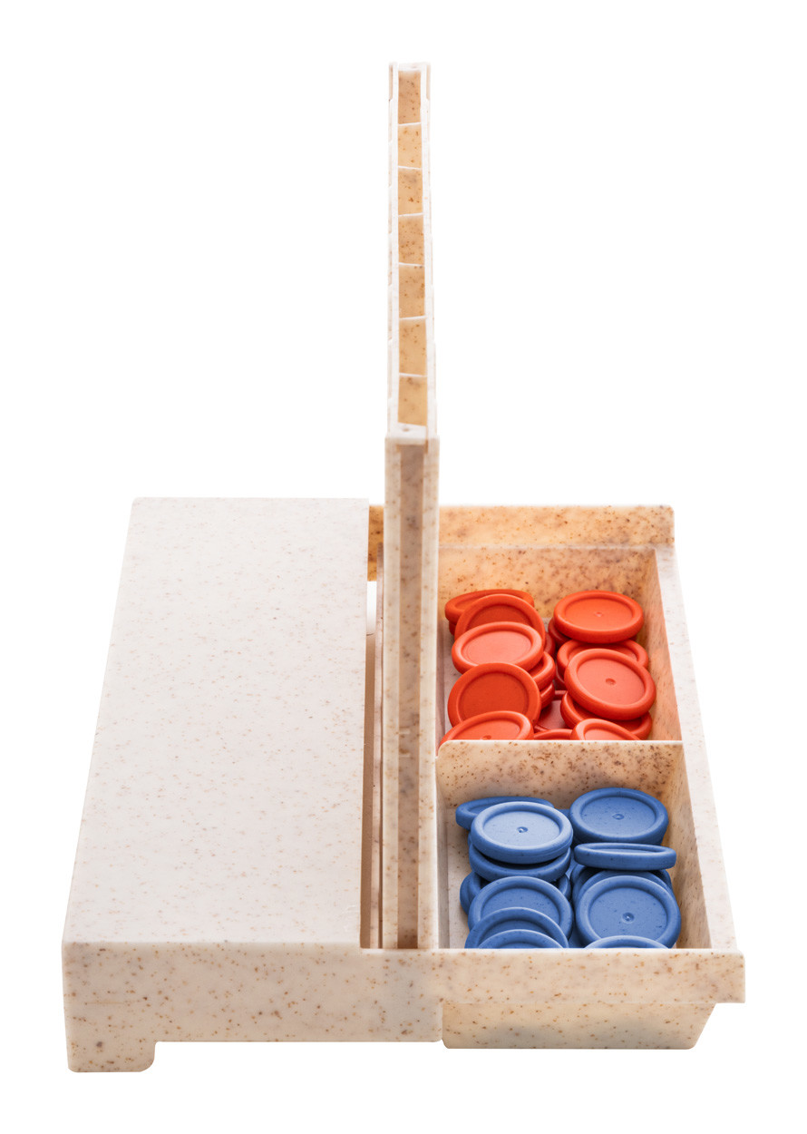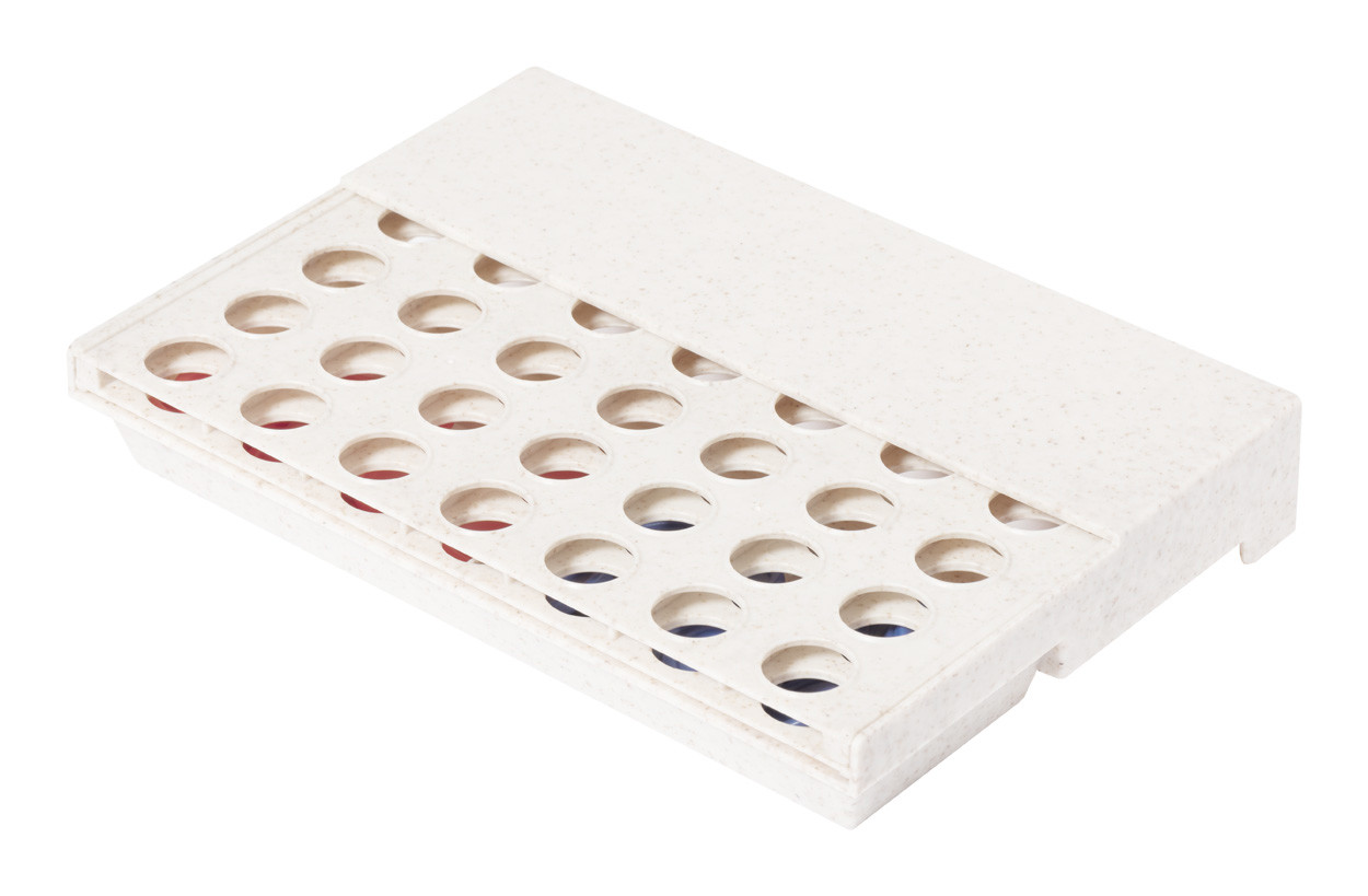 Ecological wheat straw plastic board game with foldable vertical board and 42 tokens. During the game players take turns dropping tokens into the board, aiming to align four tokens in a row.