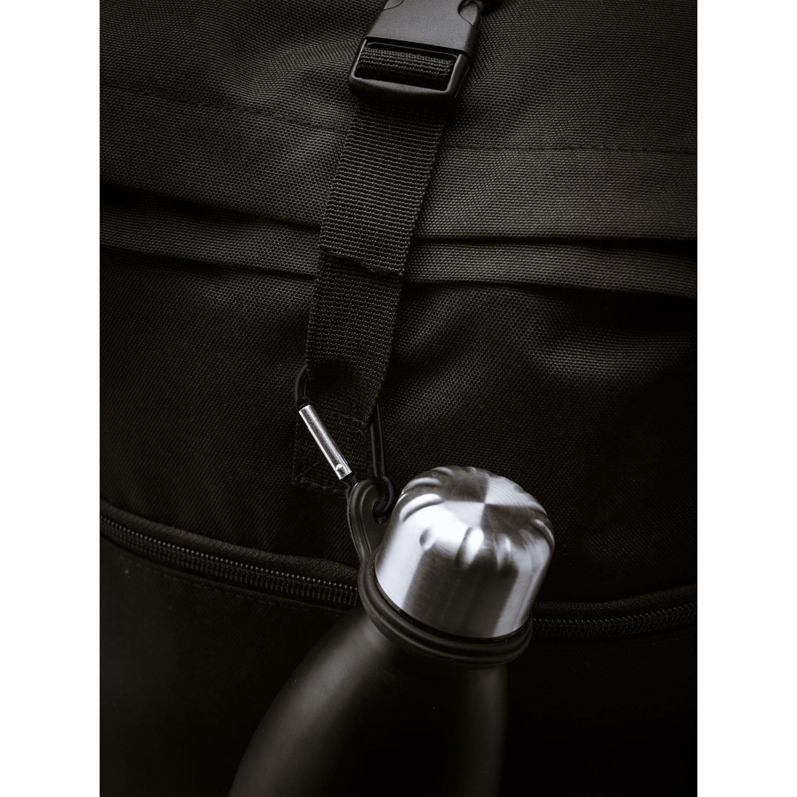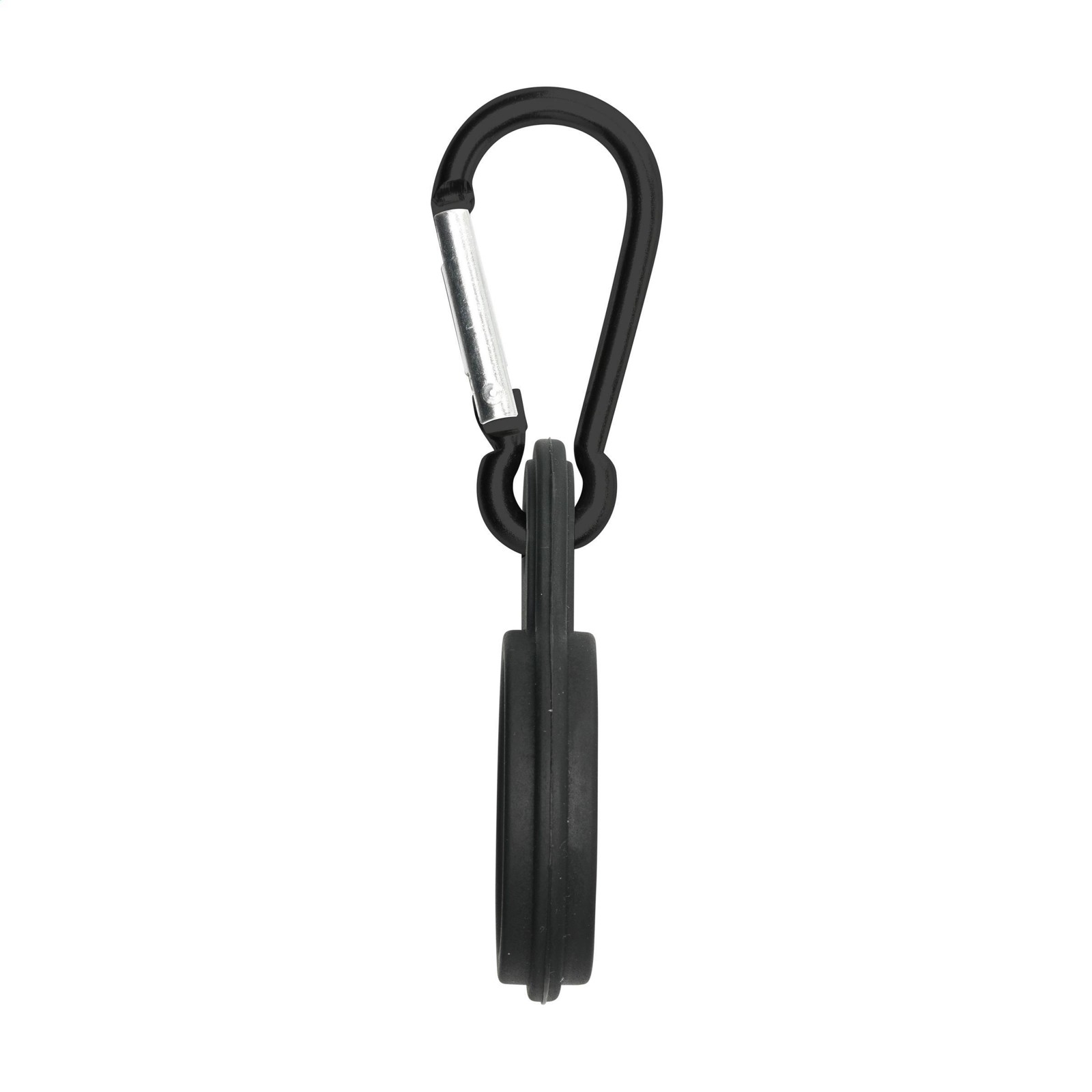 Silicone loop with carabiner. Fix the flexible loop to your drinking bottle to enable the bottle to be attached to a backpack or sports bag using the carabiner.