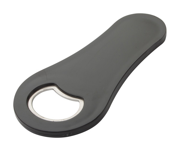 Plastic bottle opener with fridge magnet.