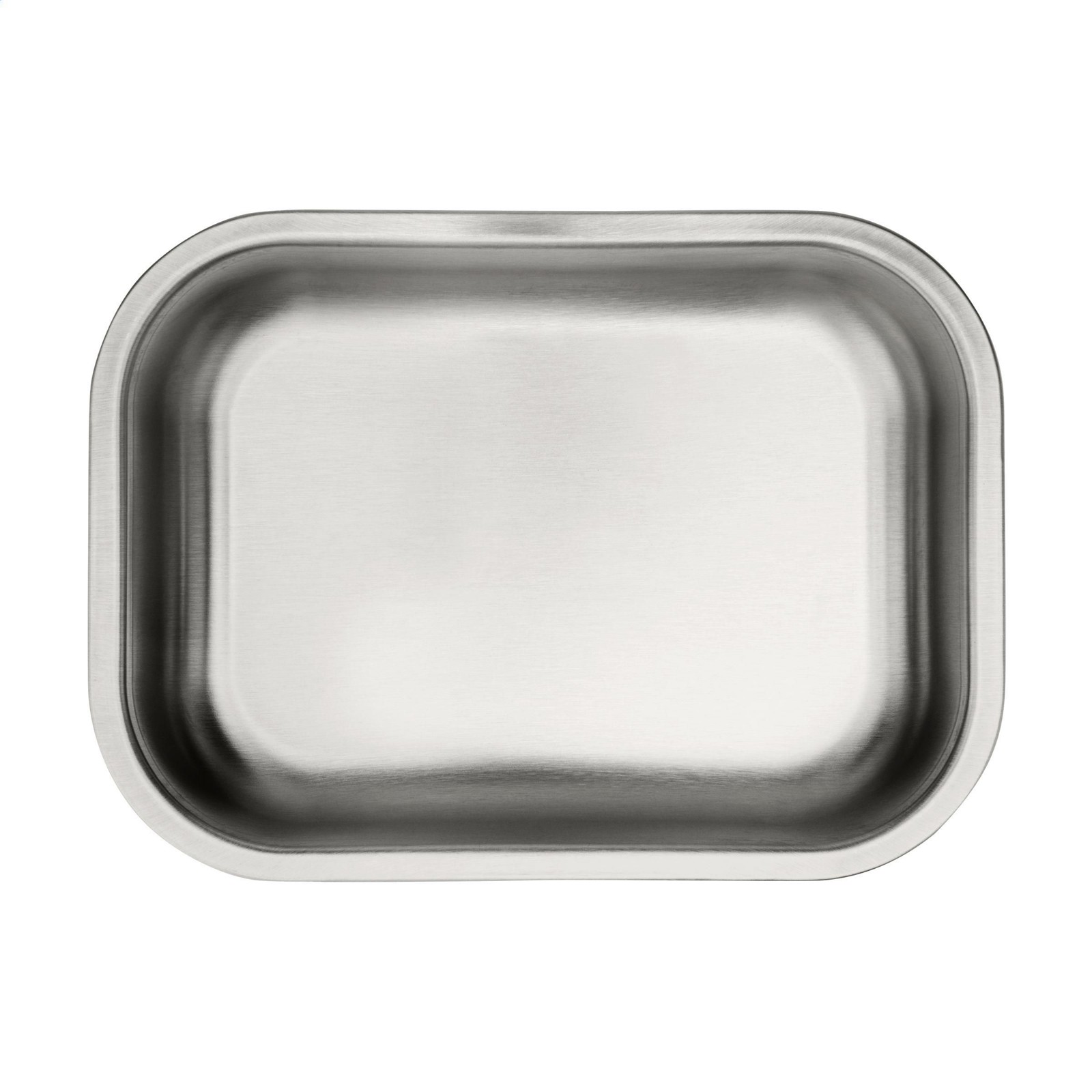 Lunch box from Brabantia made from high-quality stainless steel. Perfect for safely storing sandwiches and rolls on the go. The reusable lunch box has a secure click closure and an airtight seal, so your lunch stays fresh for longer. Suitable for the oven (without lid), freezer and dishwasher. Made from 51% recycled material. 100% recyclable. With a 5-year manufacturer's warranty. Capacity 1,100 ml.