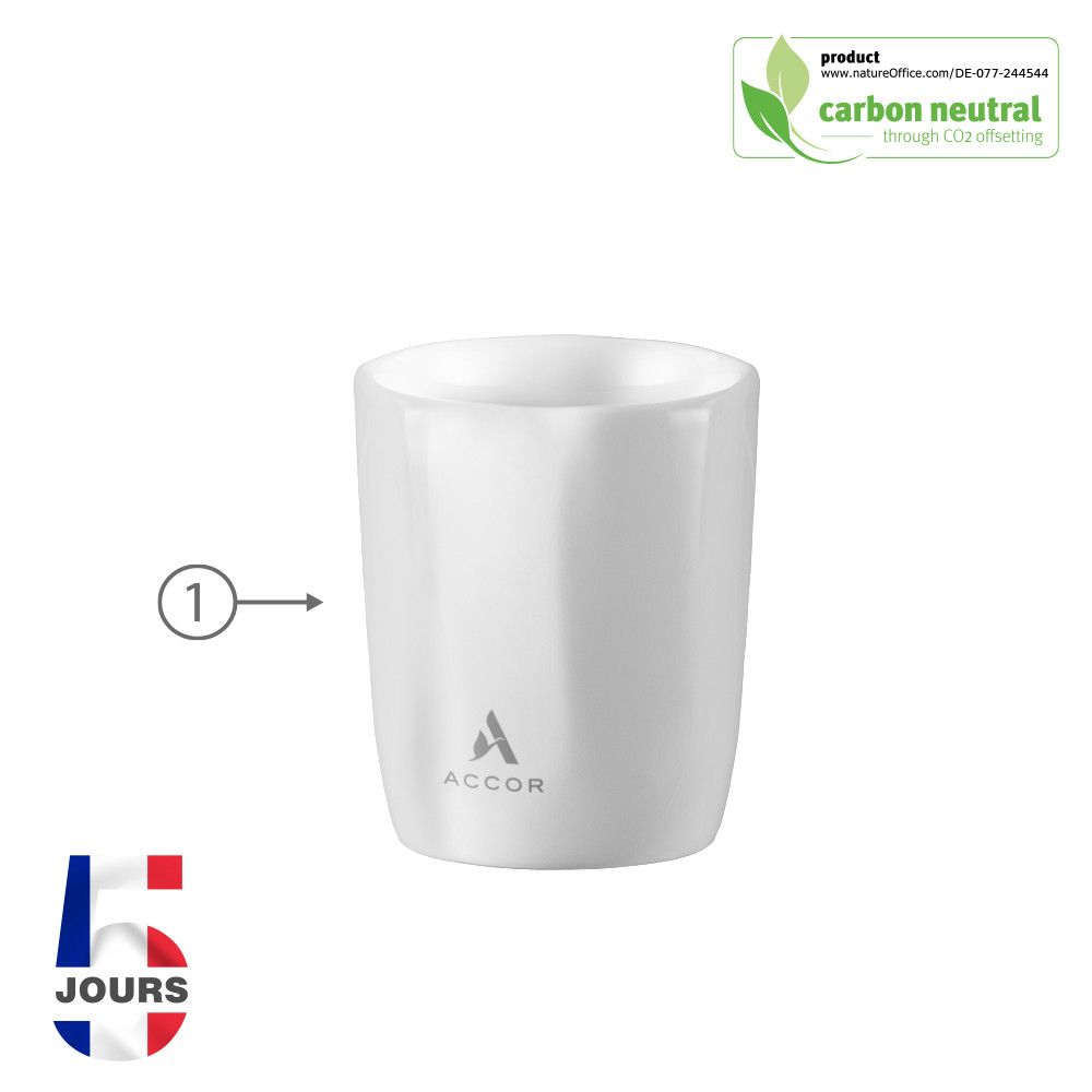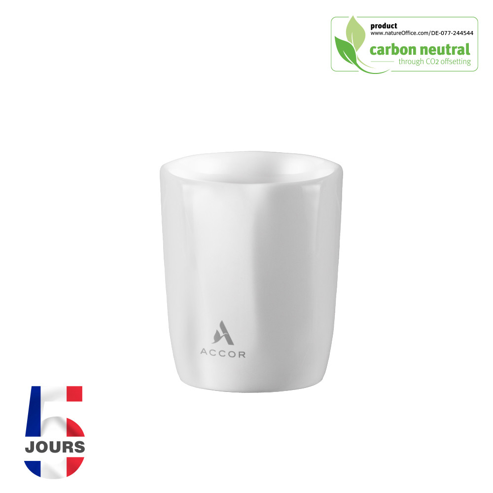 Double-walled, circular reusable coffee-to-go cup with lid from Circular&Co. The outer insulating layer of this cup is made from used, recycled single-use paper coffee cups. With inner wall and lid made from PP. 100% leak proof. The insulating effect keeps your hot drink hotter and cold drink colder for longer. The lid is designed with patented 360-degree technology, which allows you to sip from any angle. The coffee cup can be opened and closed with one hand and one click. Ideal for on the go. 100% recyclable. Dishwasher-safe. Washing by hand is recommended to preserve the imprint. Capacity 340 ml. EXTRA INFO: With a minimum order of 5,000 pieces, the lid of this product is available in any PMS colour. A way to create a perfect match between product and imprint. Packed individually.