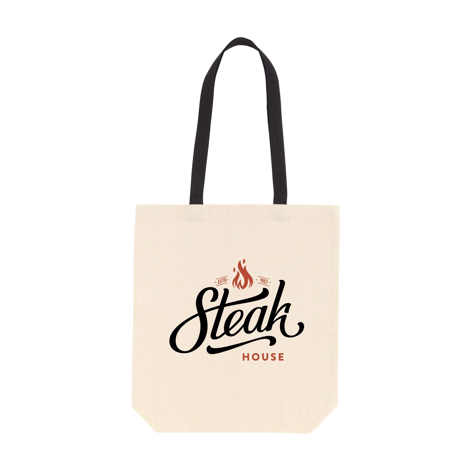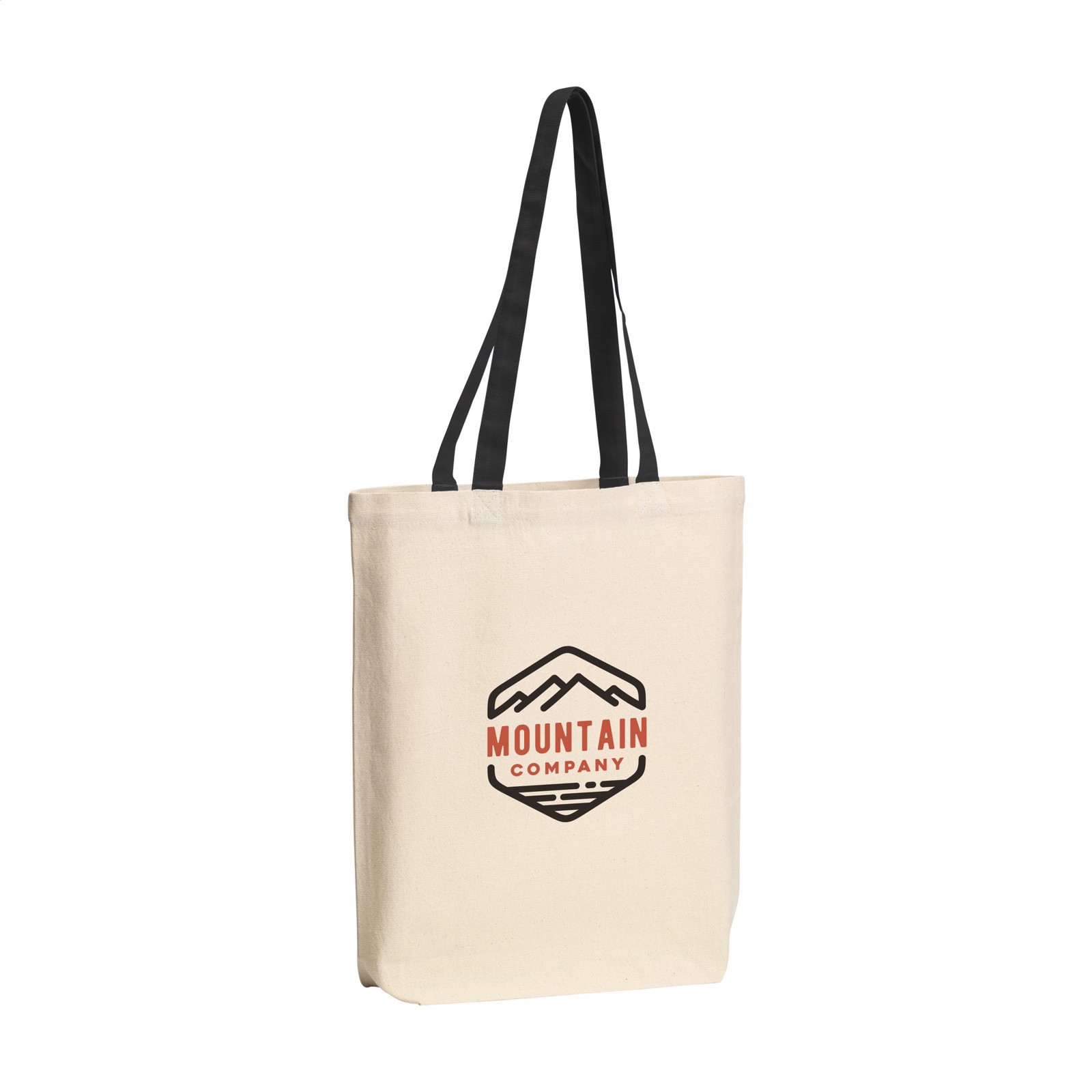 Chimborazo Tote bag in 70% recycled cotton and 30% rPET. It features a durable cork bottom for durability, 180gsm weight and comfortable 65cm handles. With a 15L capacity, this bag can carry loads of up to 12kg. Make a sustainable choice today measuring 40x38x8cm.