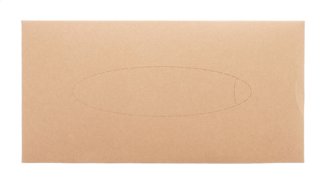 100 pcs of 2-ply recycled paper tissues in custom made kraft paper dispenser box. Price includes full colour printing. MOQ: 100 pcs.