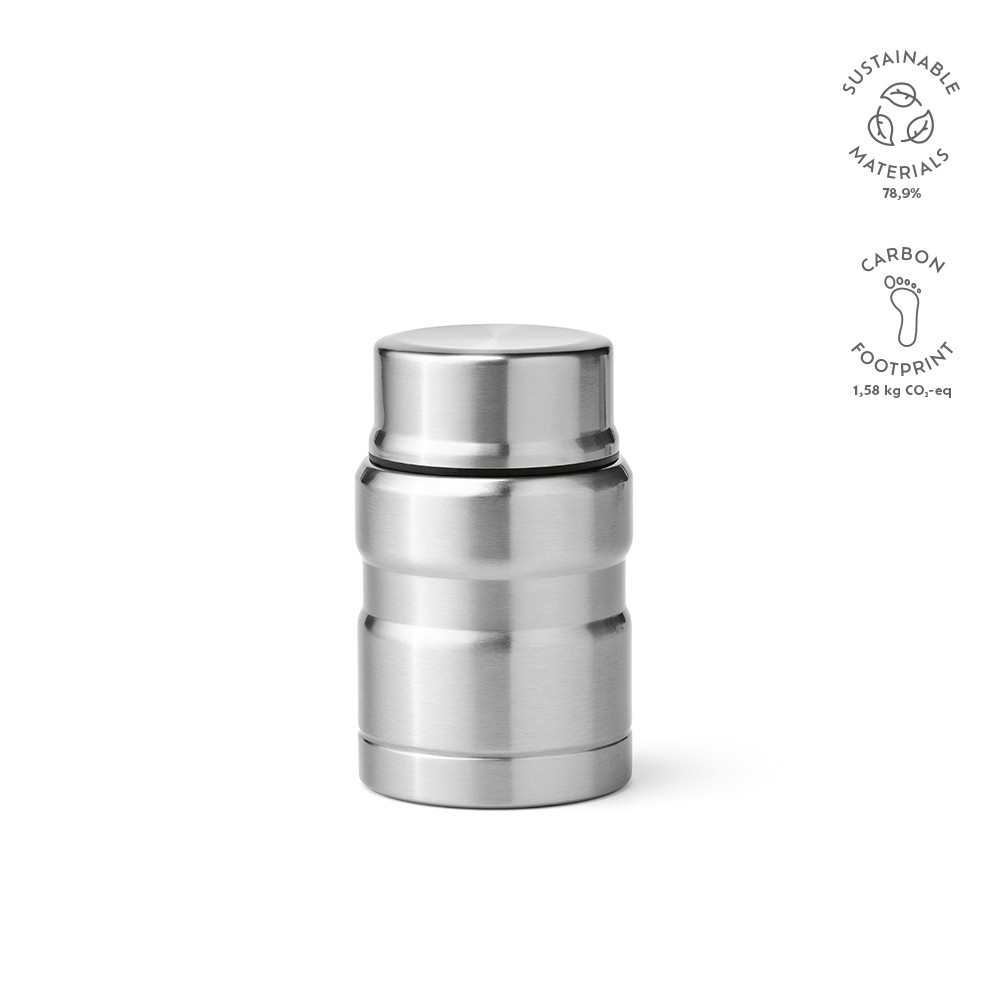 Dali 550 Food Flask has a capacity of 570ml capacity (500ml net) and is made from recycled stainless steel, double-walled for insulation (20 hours for hot and 55 hours for cold). Cleverly, a foldable spoon hides in the lid. It's your sustainable foodie friend, keeping meals warm wherever you roam. Packed inside an individual kraft box.