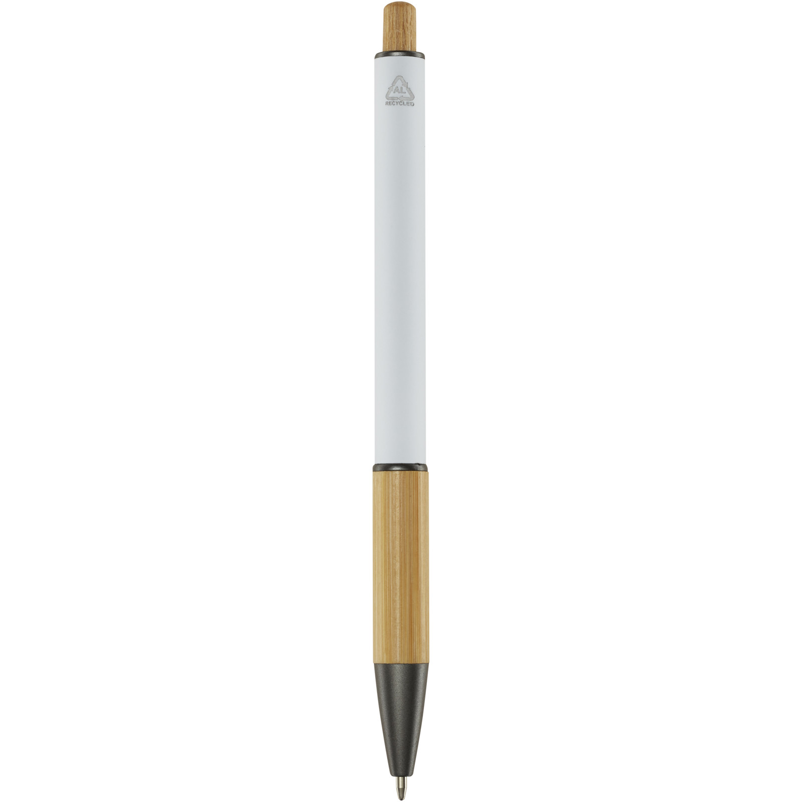 The Darius ballpoint pen is made from recycled aluminium, which requires less energy than producing aluminium from raw materials. It also reduces the amount of waste in landfills and helps to conserve natural resources aiming to reduce greenhouse emissions. The push button and the bottom part of the barrel is made of bamboo. Ink colour: Blue. Writing length: 800 metres. Nib size: 1.00 mm.