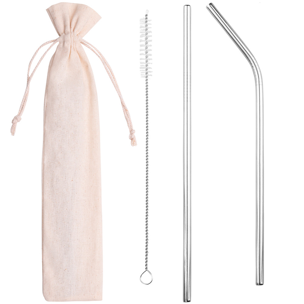 A reusable, stainless steel straw. A good alternative to plastic straws. Includes stainless steel nylon cleaning brush. Perfect for cold drinks such as smoothies or cocktails. It also adds a visually pleasing touch to any drink. Supplied per set with a canvas pouch.