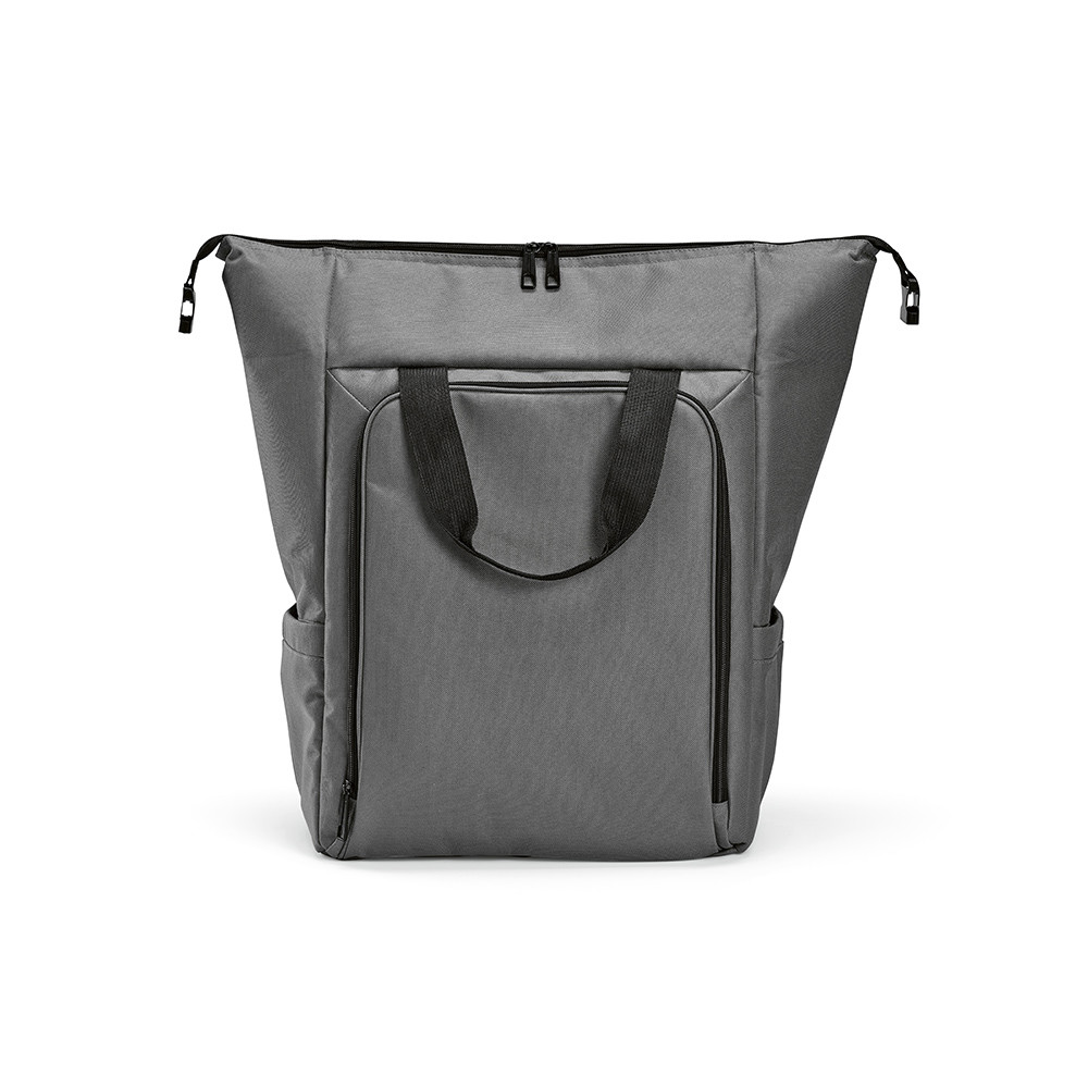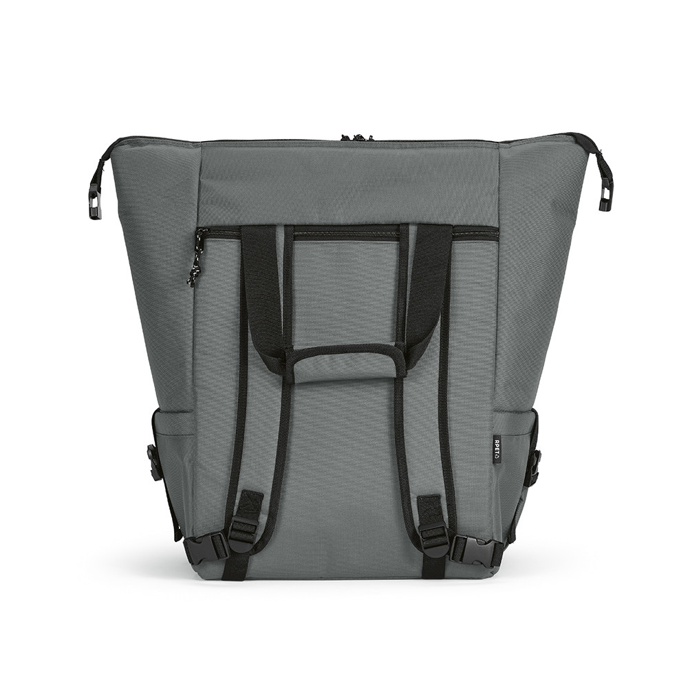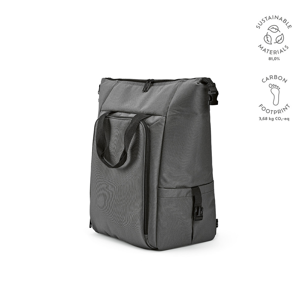 Dublin 28L cooler backpack crafted from rPET, with a big front pocket and two side pockets. A big compartment that guarantees generous storage. Keep your refreshments cool and enjoy easy cleaning. 2 ways to carry: bag or backpack. Suitable for 45 cans.