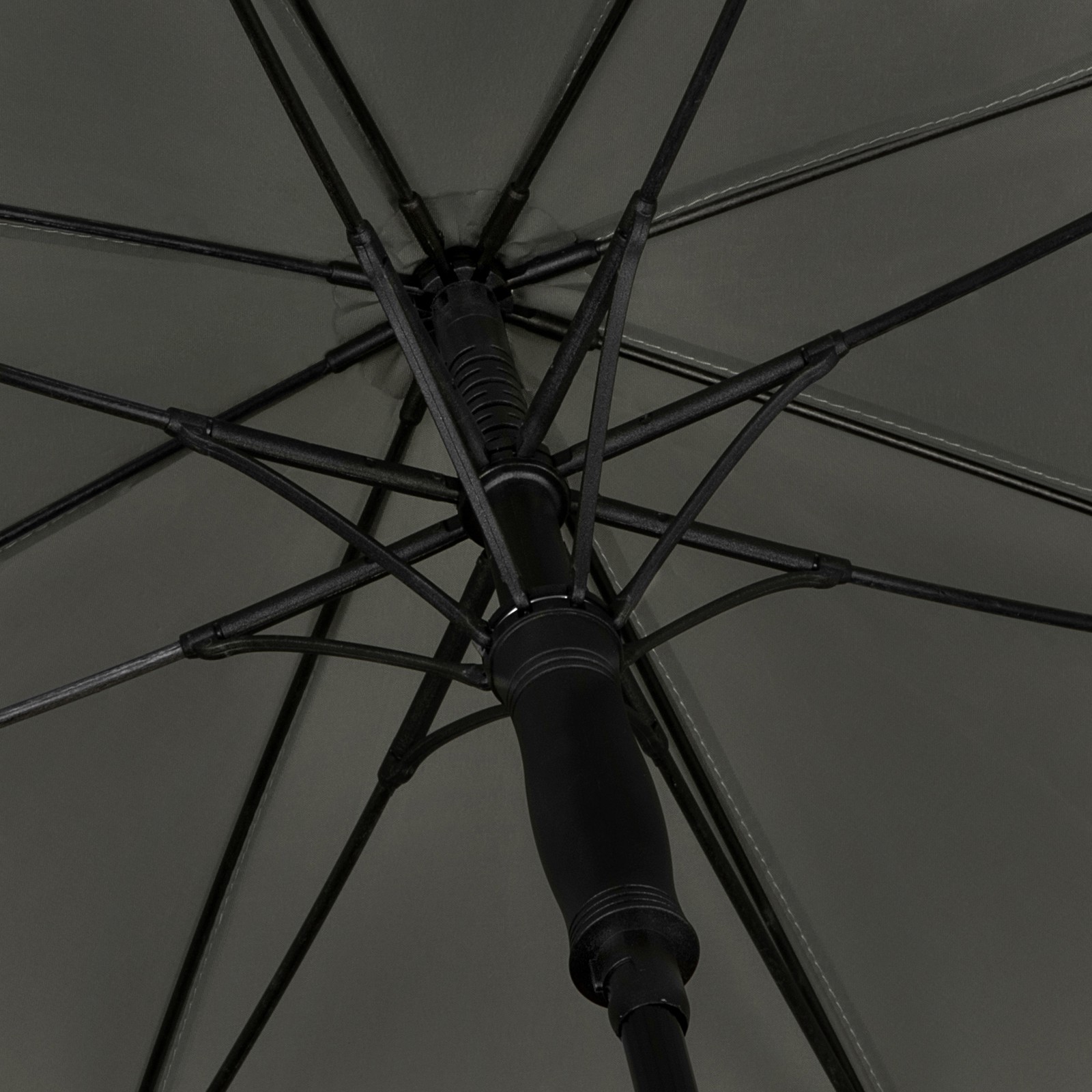 GA-318 Falcone® de luxe umbrella, windproof, 12 mm black shaft, fiberglass ribs, polyester cover, black leather look crook handle.