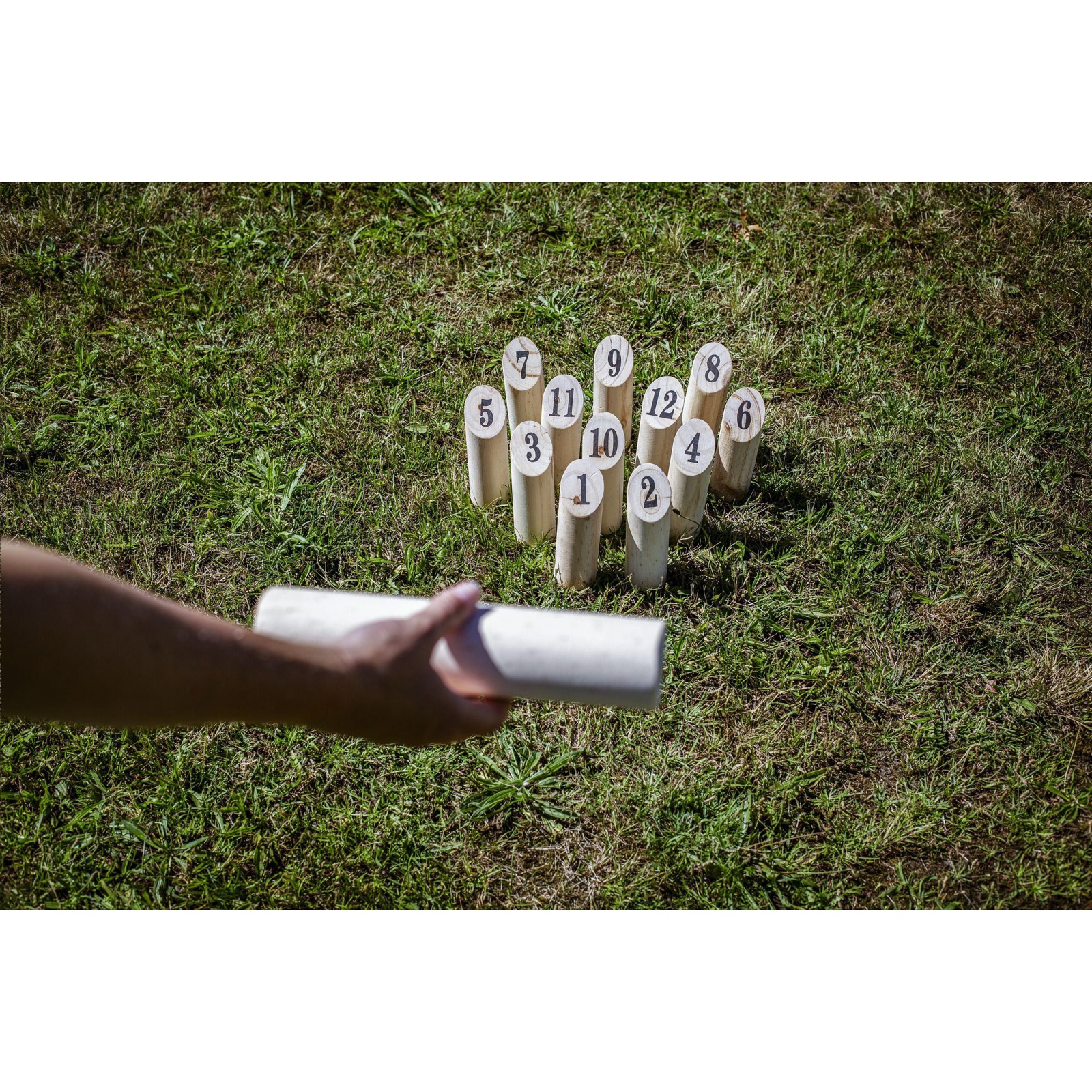 den throwing game, also known as Finnish skittles. Who will be the first to reach the required 50 points? This Finnish outdoor party game requires skill, precision and strategy. Fun to play at a campsite or on the beach. Suitable for players both young and old. The 13-piece set comes in a cotton bag. Incl. instructions. Packed individually.