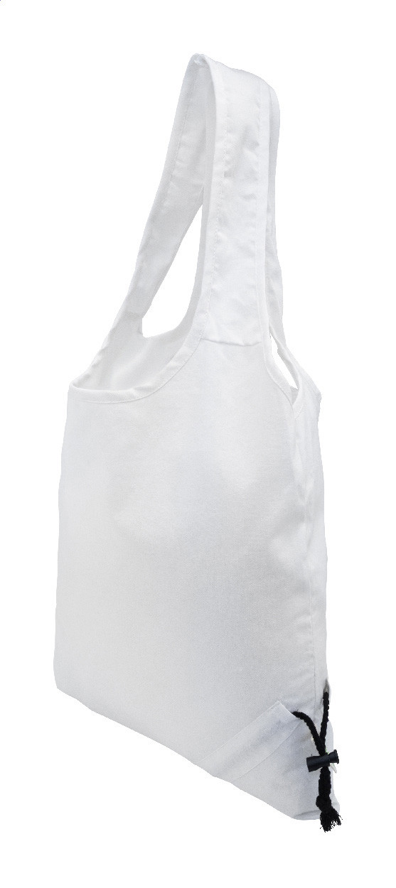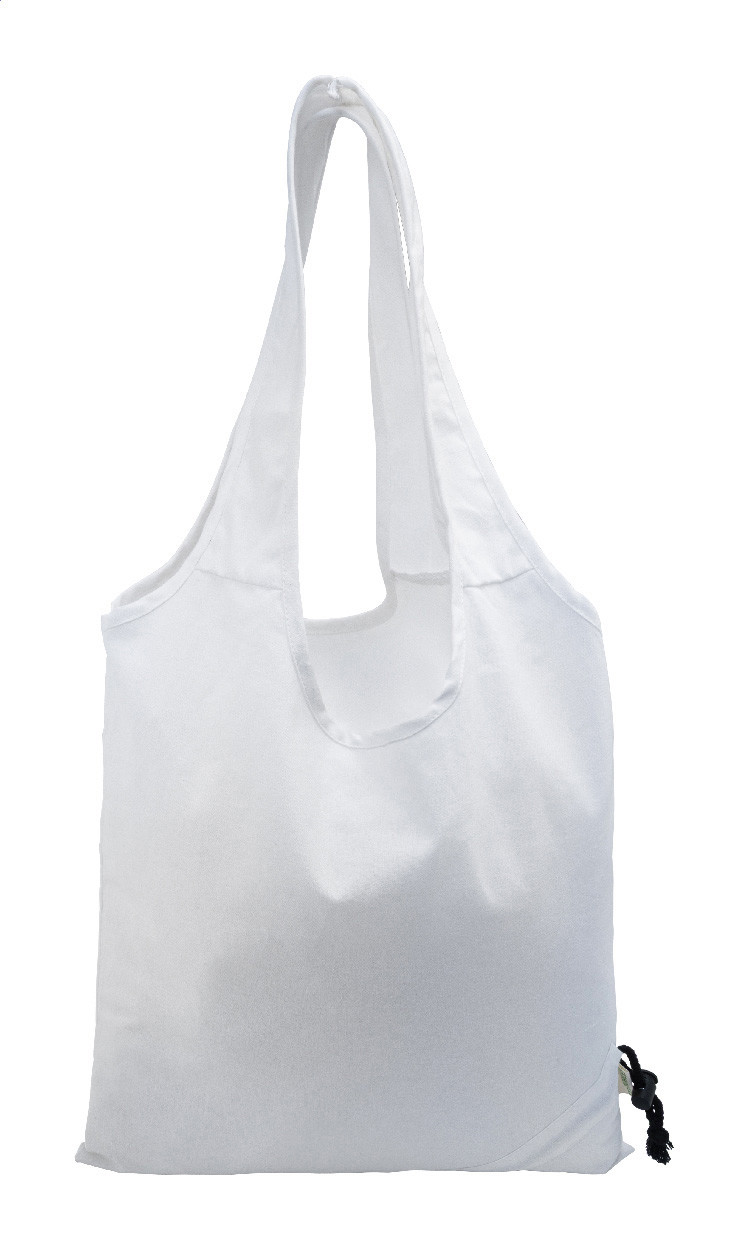 Foldable shopping bag in 70% recycled cotton and 30% RPET polyester, 140 g/m². With distinctive recycled cotton label.