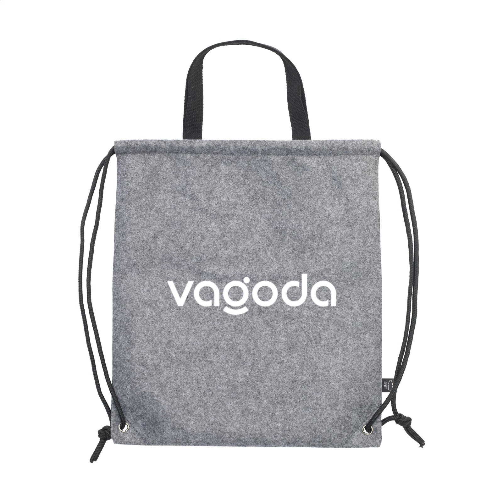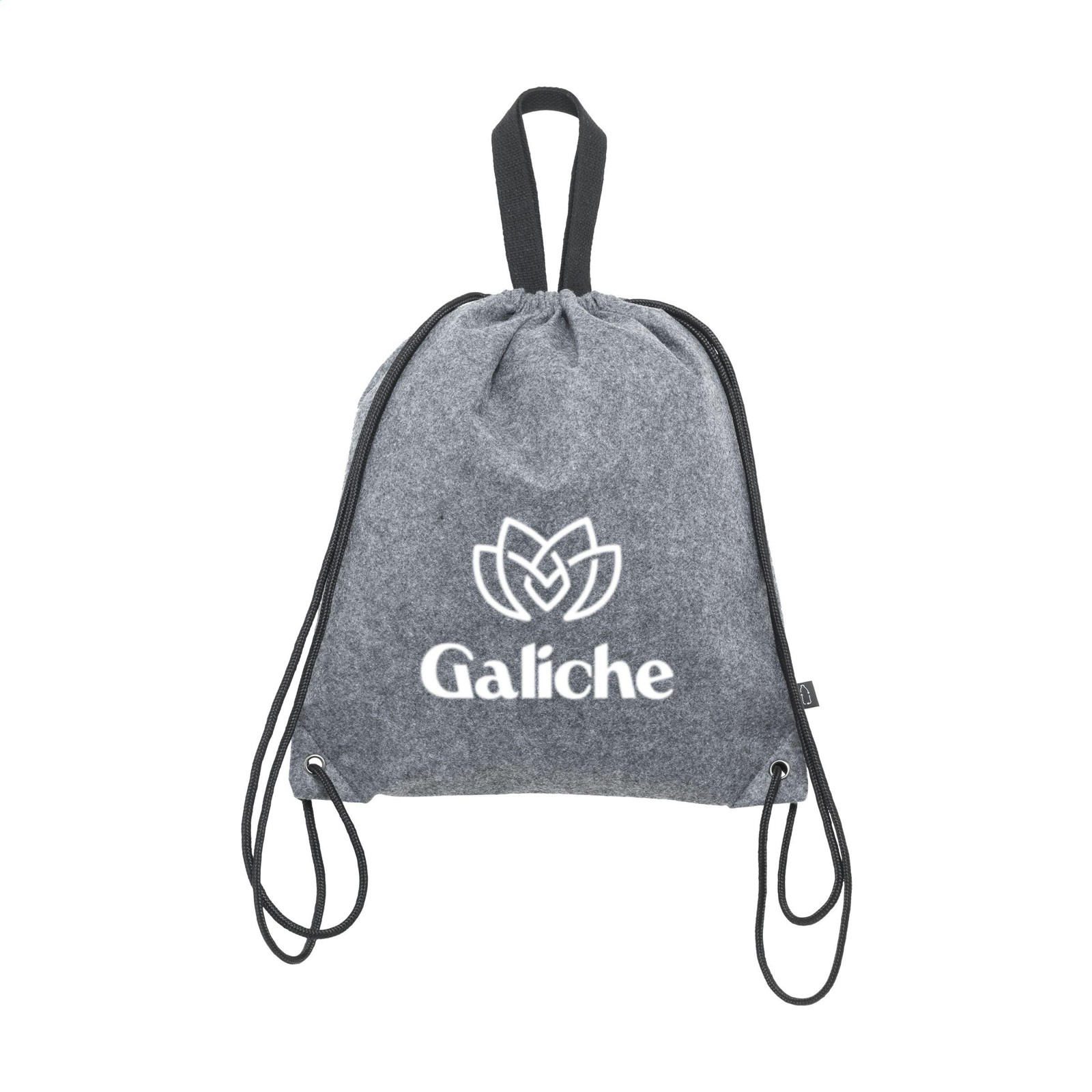 Backpack made from RPET felt (made from recycled PET bottles and recycled textiles). With drawstring and handy carrying loops. Capacity approx. 10 litres. GRS-certified. Total recycled material: 82%.