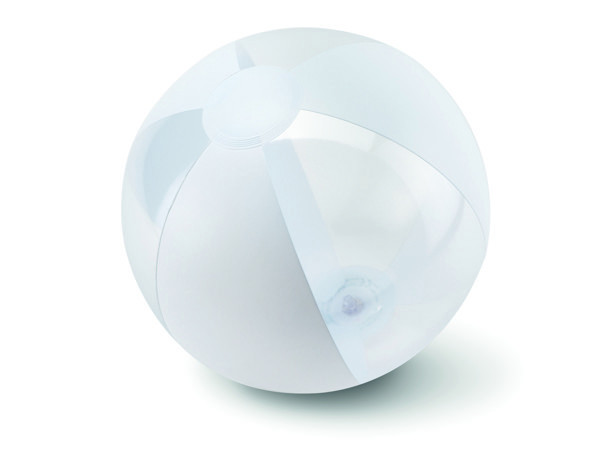 Inflatable beach ball with transparent and solid panels. Inflated: Ø24cm