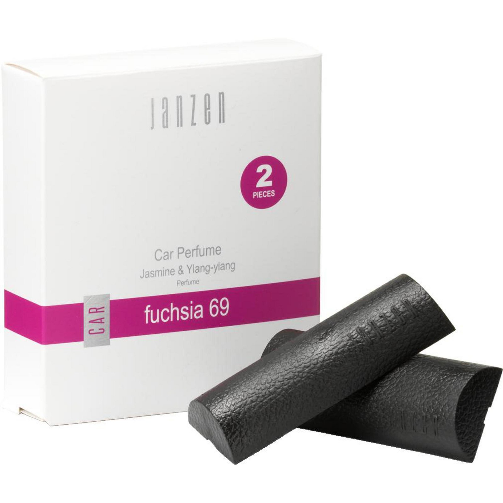 Car perfume in the fragrance Fuchsia 69 from the JANZEN brand. With this car perfume, you are surrounded with your feeling of coming home even on the road. The fragrance lasts for 35 to 45 days and is diffused by the airflow from your car's ventilation system. The pack contains 2 pieces. The Fuchsia 69 perfume is a potpourri of fragrant jasmine, soft gardenia, carnation and the 'flower of flowers': ylang-ylang - cheerful and provocative, light-hearted and sensual. Packed in a gift box. Each set is supplied in an individual gift box.