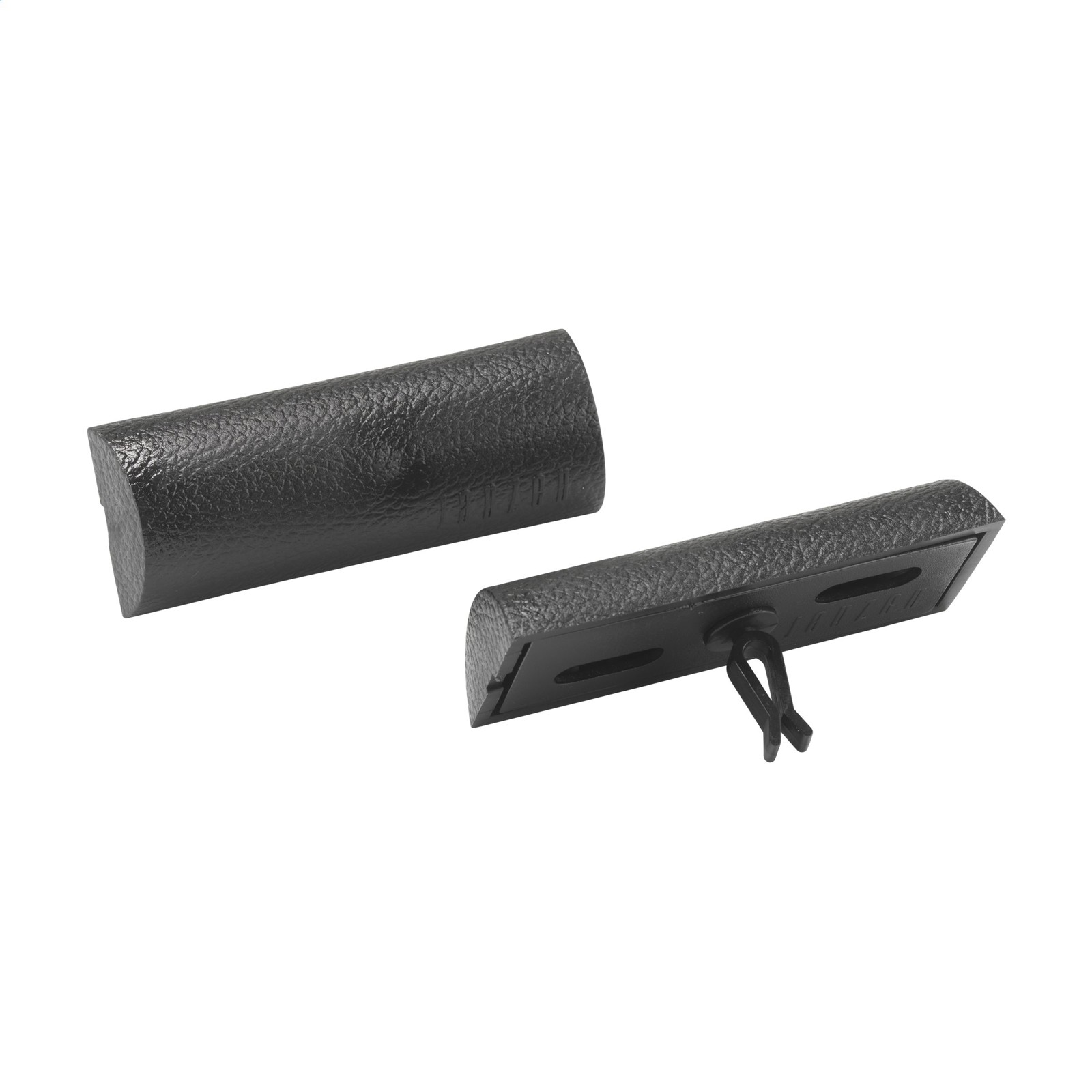ABS smart phone holder for in the car. Attaches to the air vent. Place the metal plate on the back of the phone (adhesive) and the phone will be held in place by a magnet.