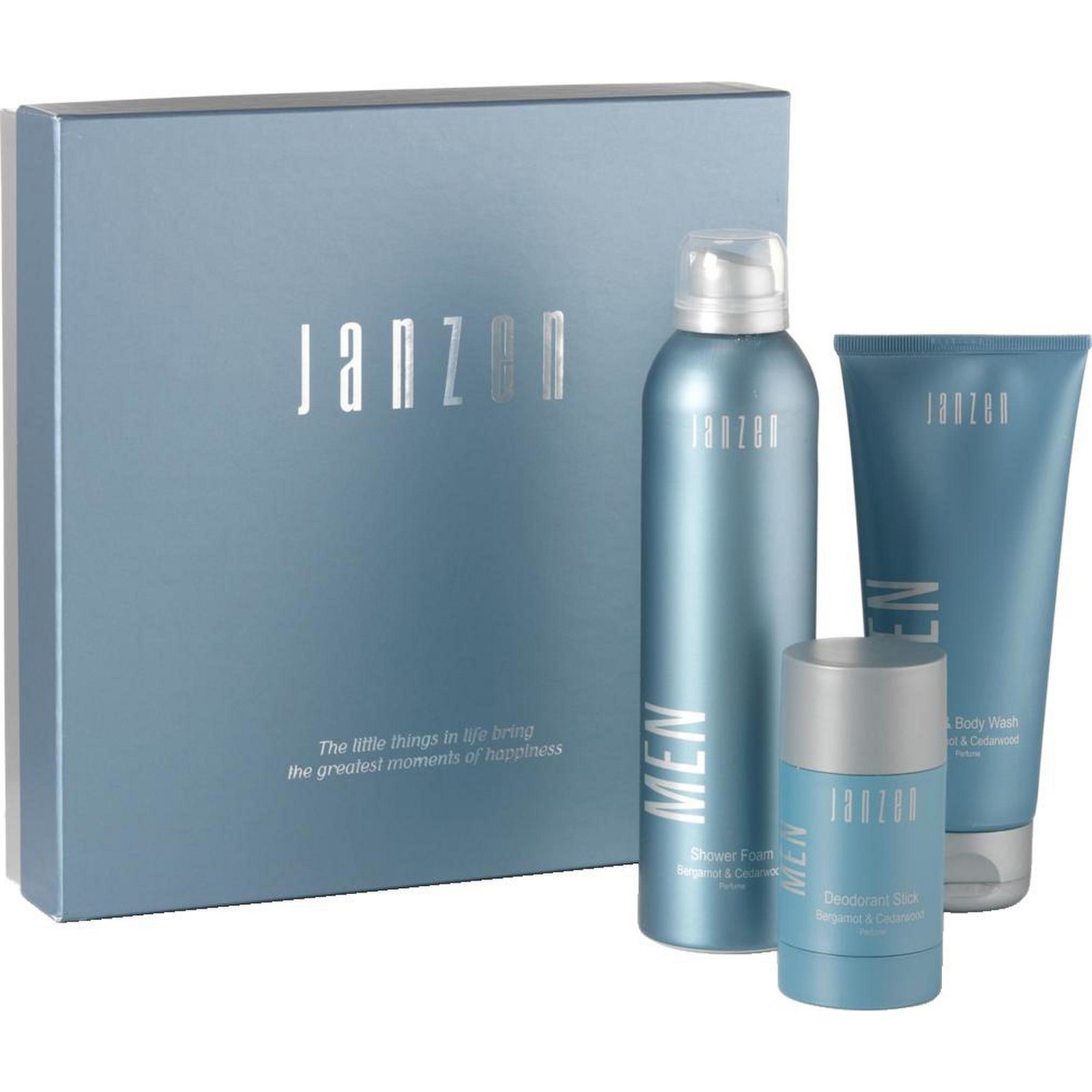 A gift set from the JANZEN brand, specially put together for men, with 3 care products for pleasant skin and hair care. Contents: • Shower Foam - 200 ml • Hair & Body Wash - 200 g • Deodorant Stick - 75 ml. This gift set with fine care products ensures that the day starts fresh and full of confidence. With the delicious scent of bergamot and cedarwood, complemented by notes of citrus, nutmeg and musk. The products are packaged in a luxurious gift box. Each set is supplied in an individual gift box.