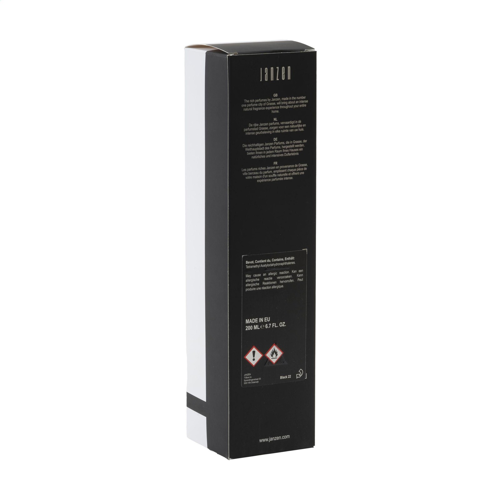 Home fragrance sticks in the scent Black 22, from the JANZEN brand. The special wooden sticks allow your favourite fragrance to spread throughout your home. Suitable for any room of your choice: your bedroom, toilet, office or kitchen - you name it. You're in charge of the intensity of the fragrance by adding or removing sticks. A fresh and warm fragrance, treading a fine line between light and intense. Black 22 is a rich bouquet of bergamot and hot spices, tropical bark and sweet tonka bean — also known as the 'forbidden' fruit. This glass bottle is filled with 200 ml of perfume oil and comes with sticks. Packed per set in a gift box.