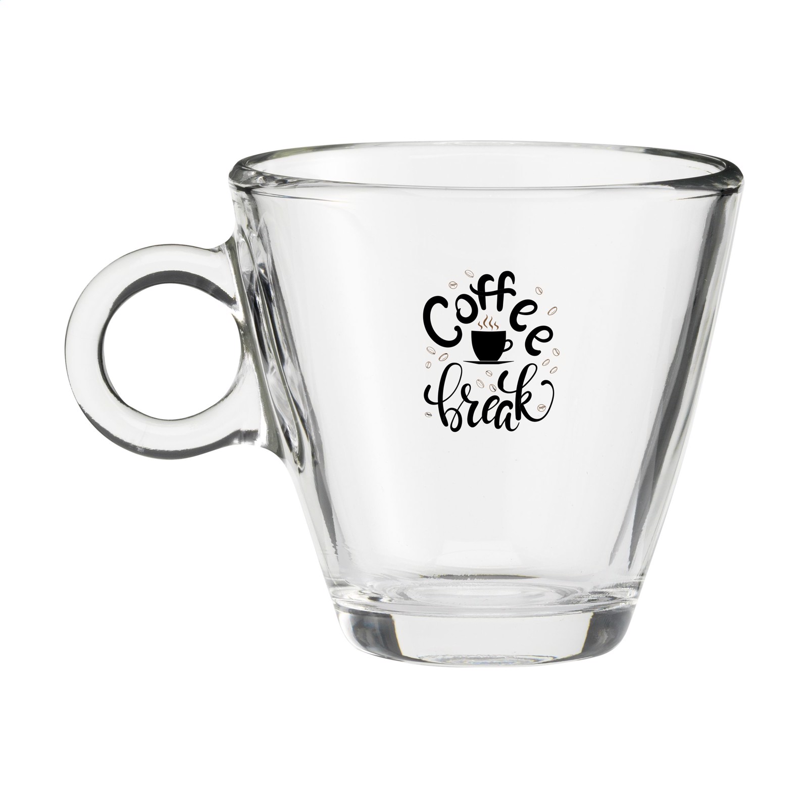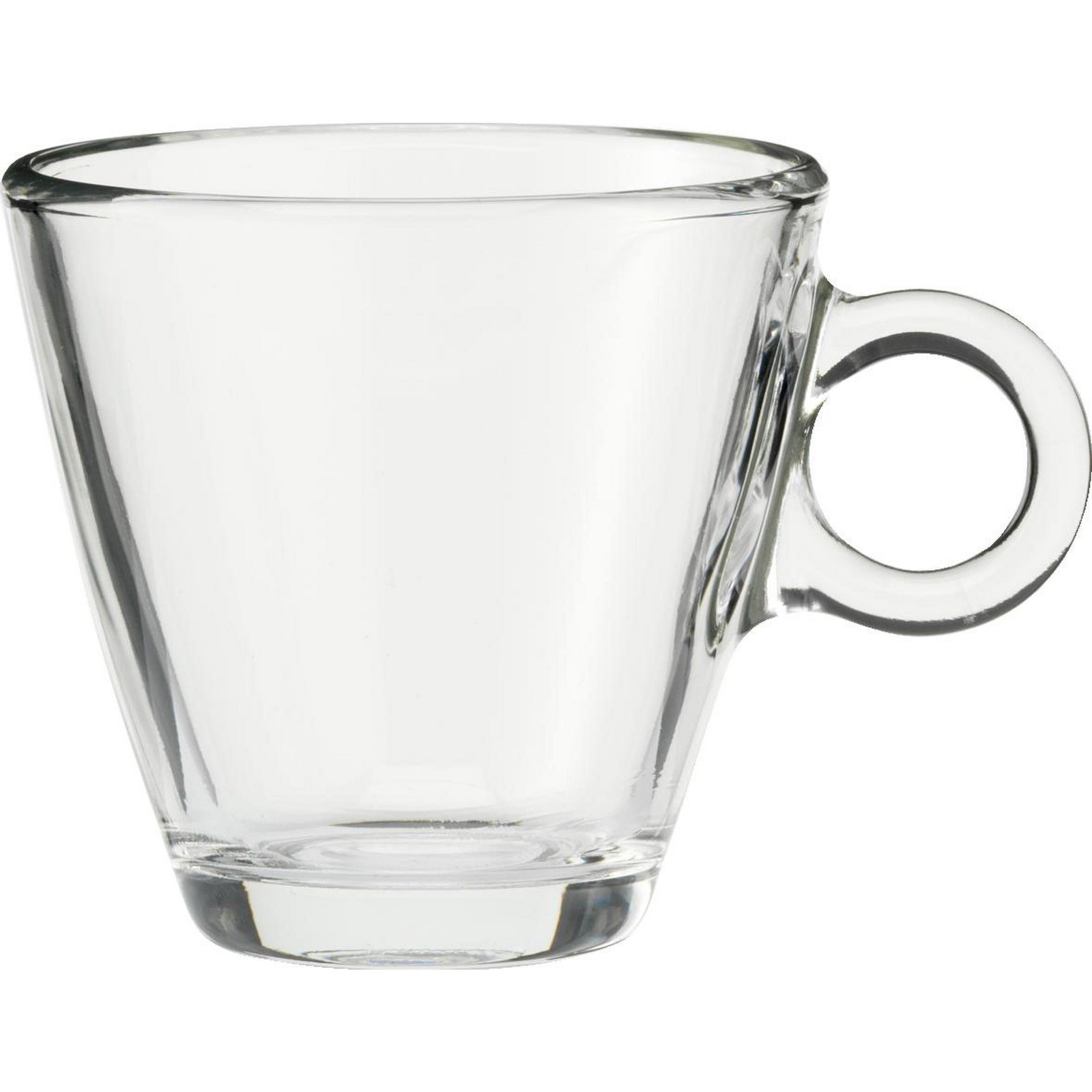 Coffee glass made of high-quality, hardened glass. Timeless model with a curved handle. Suitable for coffee and cappuccino. Capacity 230 ml. Made in Italy.