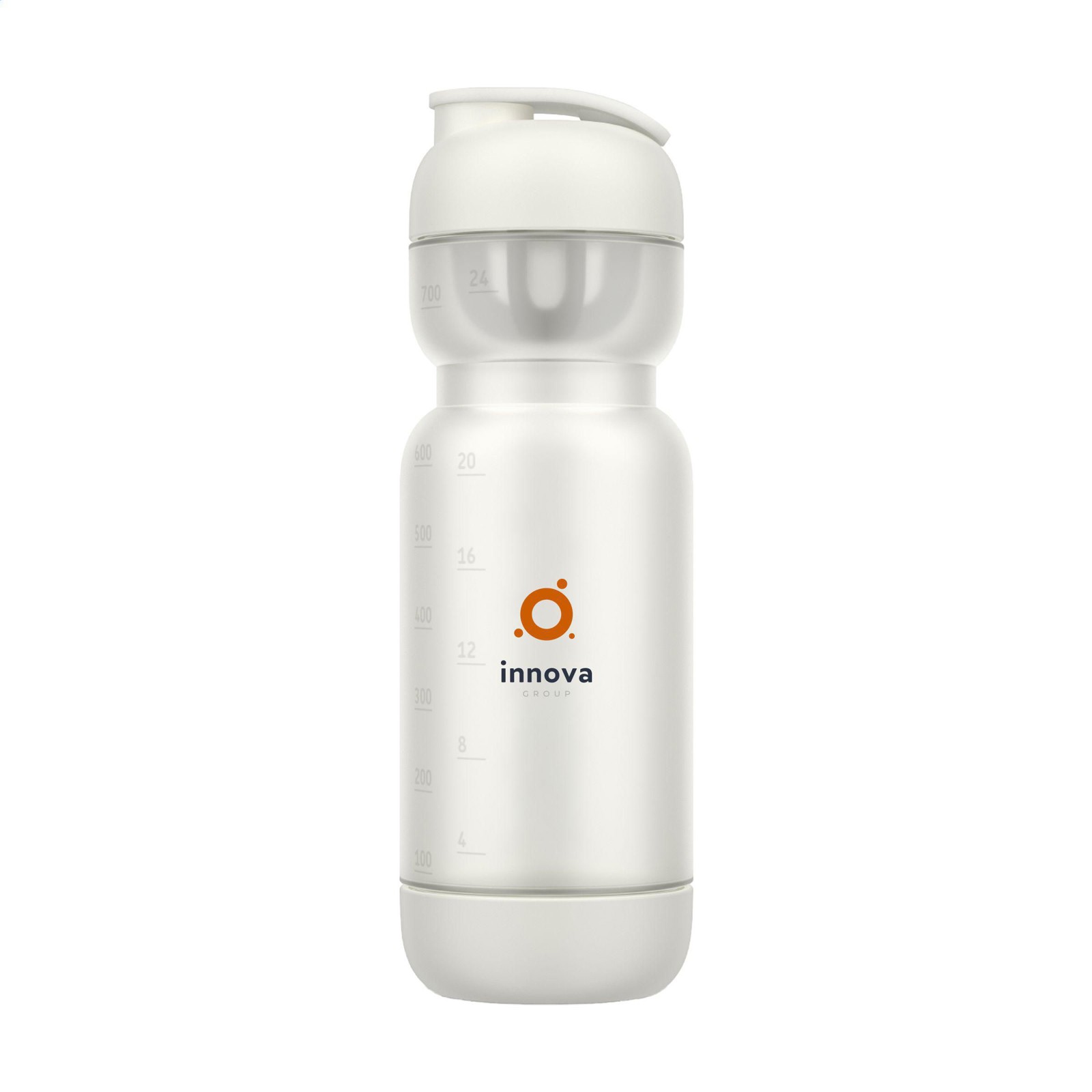 Shaker cup from the Mepal brand. Made from PETG and PP plastic. The innovative design has a screw-on lid with a sealable drinking opening. The cap slides easily to the side for comfortable drinking. This shaker cup is ideal for making lump-free protein shakes and smoothies. The large openings make it easy to add ice cubes or fruit. Thanks to the built-in mixer and measuring scale, you can easily mix your favourite drink without lumps. Whether you're on the go or at the gym, this leak-proof cup keeps your drink within reach. The removable bottom makes cleaning easy. Dishwasher-safe. Washing by hand is recommended to preserve the imprint. Comes with a 2-year Mepal manufacturer's warranty. Capacity 800 ml. Made in Holland. Mepal is B Corp certified; the collection is produced according to the highest achievable ecological and social B Corp standards.