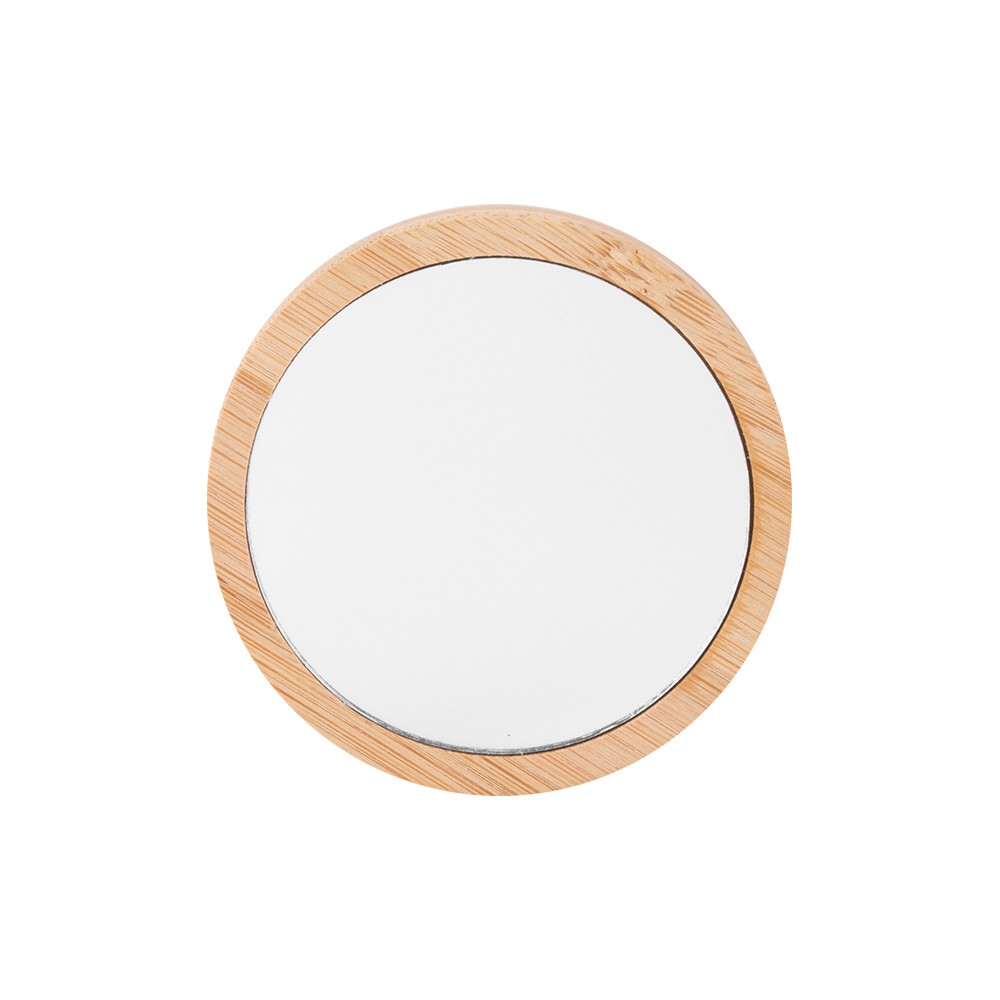 Compact pocket bamboo mirror for travel or daily skincare or makeup use. There is a small compartment at the bottom of the mirror for small accessories. The bamboo used is sourced and produced following sustainable standards.