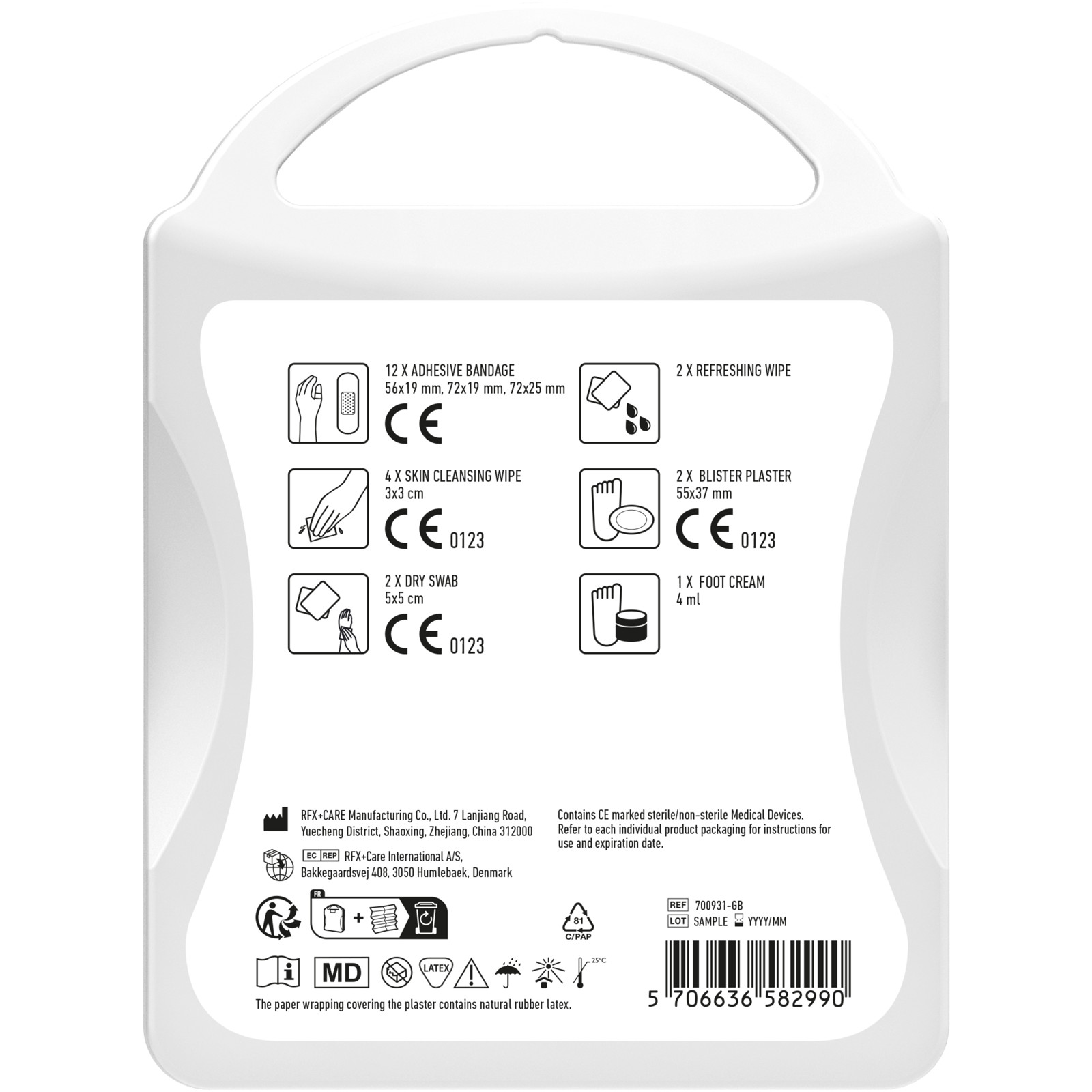 This basic first aid kit is handy to keep at home or in your car so you are prepared for injuries and emergencies. Contents: 12 wash proof plasters, 4 skin cleansing swabs, 2 dry swabs, 1 elastic bandage, 2 burn wound lint pads. All of the first aid and care products within this kit meet all applicable EU regulations. Price includes full colour print.