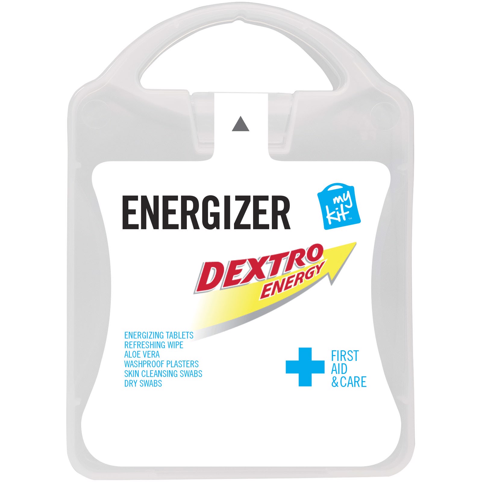 Ideal set for when you need to re-energise. With this set you will able to refresh and energise yourself and still be prepared for small accidents and injuries. Contents: 12 wash proof plasters, 2 energizing tablet packs (4pcs), 1 refreshing wipe, 1 aloe Vera, 4 skin cleansing swabs, 2 dry swabs. All of the first aid and care products within the kit meet all applicable EU regulations. Price includes full colour print.