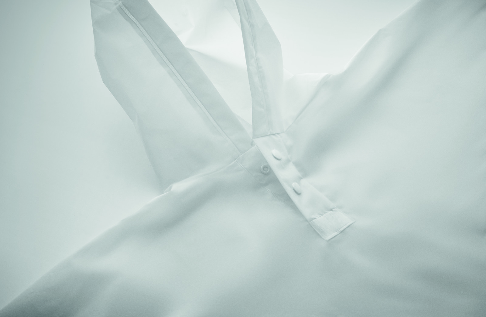 Transparent, lightweight waterproof plastic poncho in a poly bag. Unfolded dimensions, measured without hood: 100 x 120 cm.