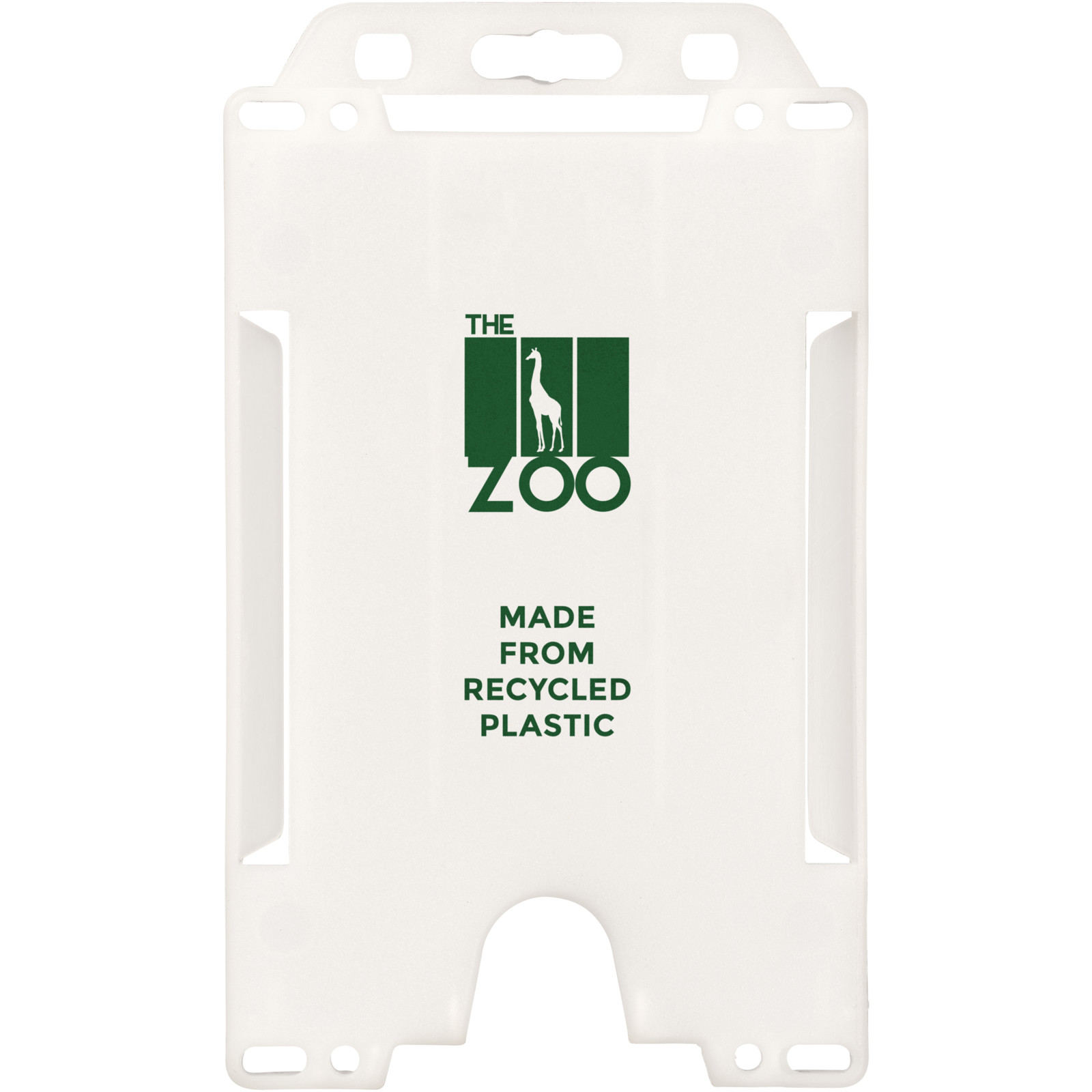 Portrait card holder made from recycled plastic. Ideal for exhibitions, workplaces, and networking events. Suitable for standard business card and credit card sized passes. Due to the nature of recycled plastic, colour shades may vary slightly, and there may be specks of colour. Made in the UK.
