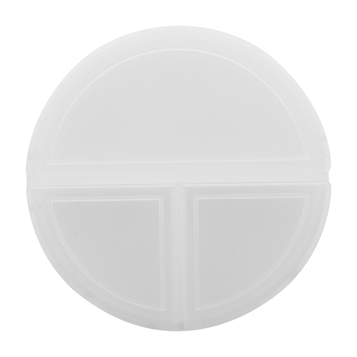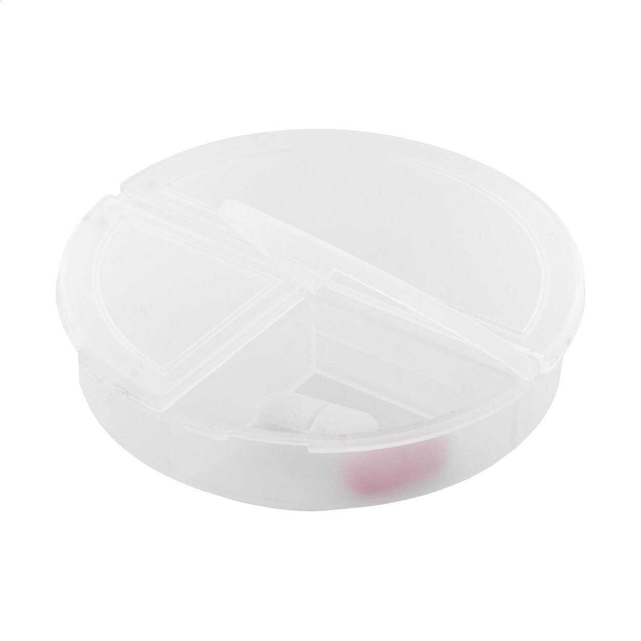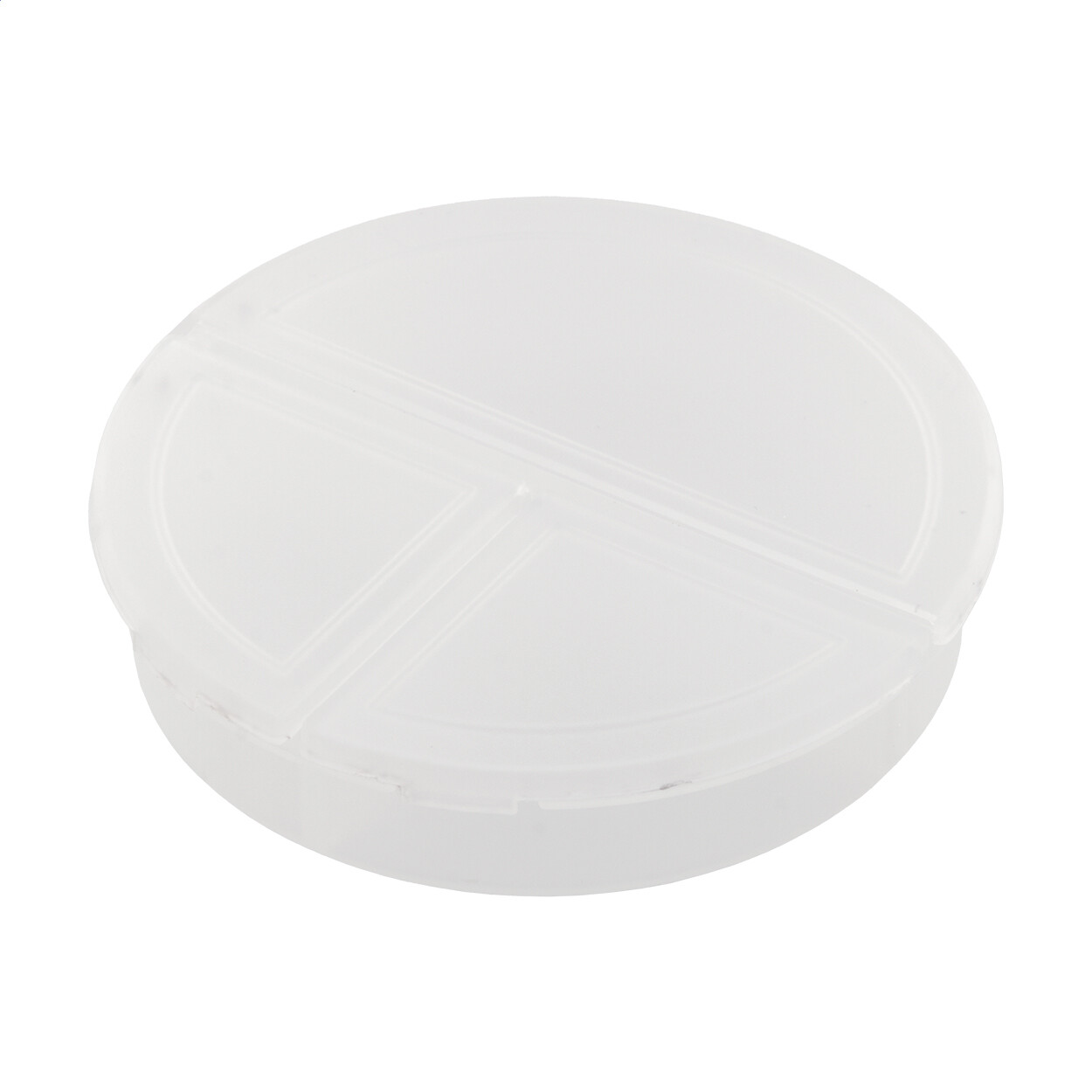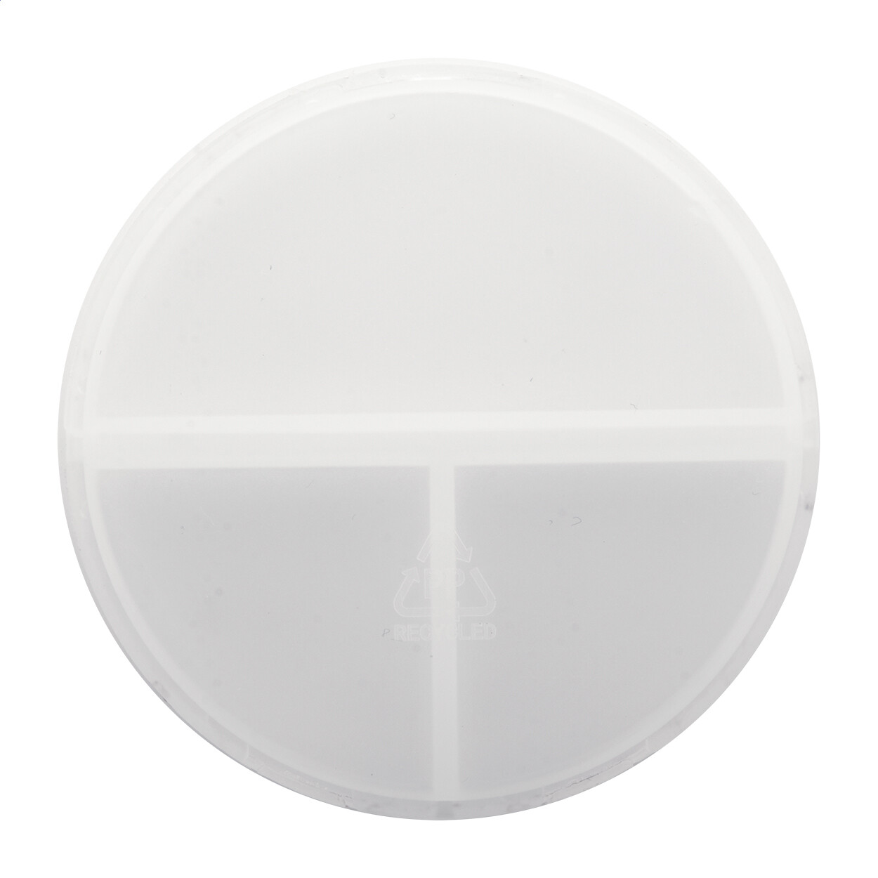 Recycled PP plastic pillbox with 3 compartments.