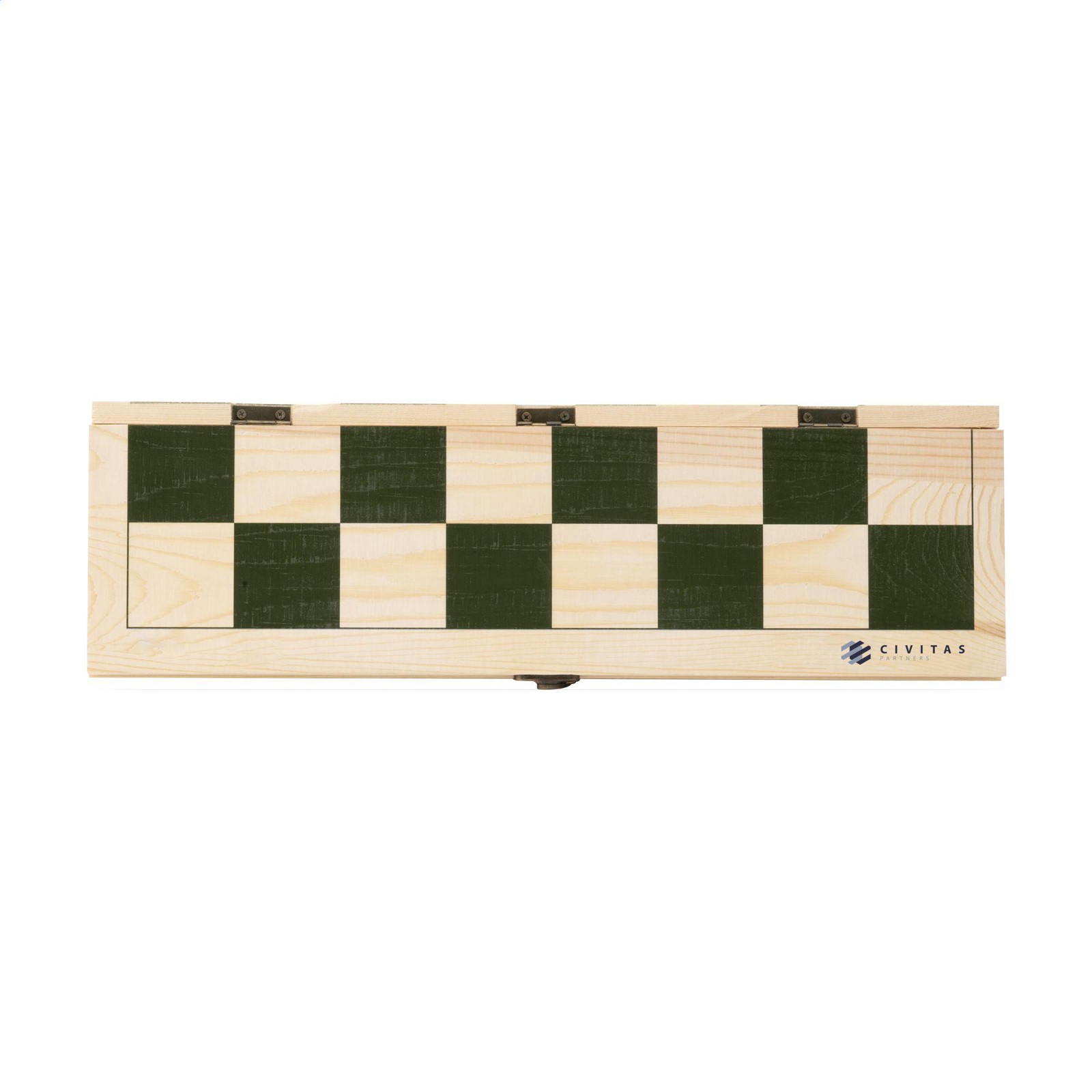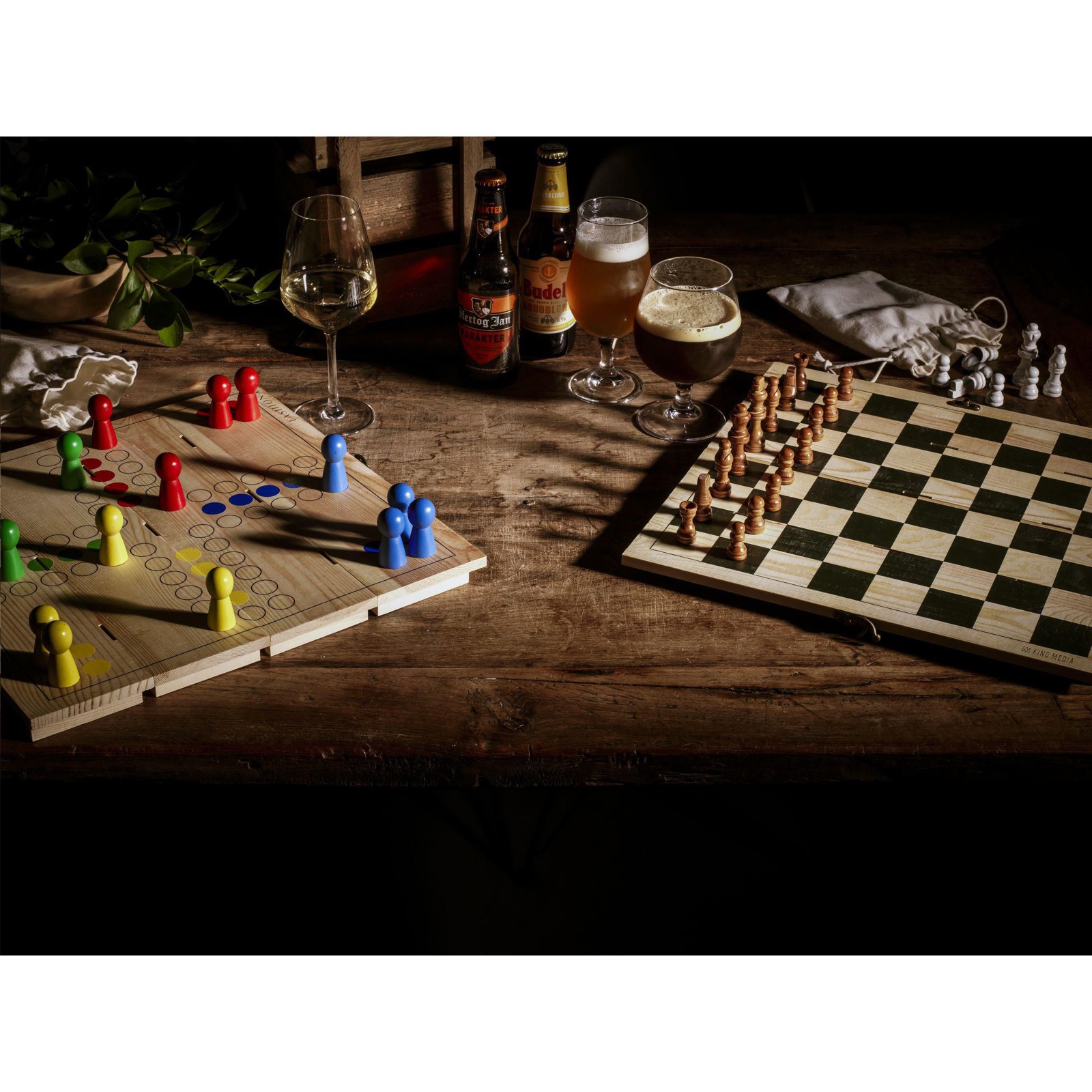 Rackpack Gamebox Chess: a wine gift box and chess game in one. A gift box for one bottle of wine. The box fully opens to reveal a complete board game. Features wooden chess pieces in a sturdy canvas storage bag. The complete gift for a successful game night. Rackpack: a wine gift box made from FSC 100% certified wood with a new second life! • suitable for one bottle of wine • pine wood • wine not included. Packed individually.