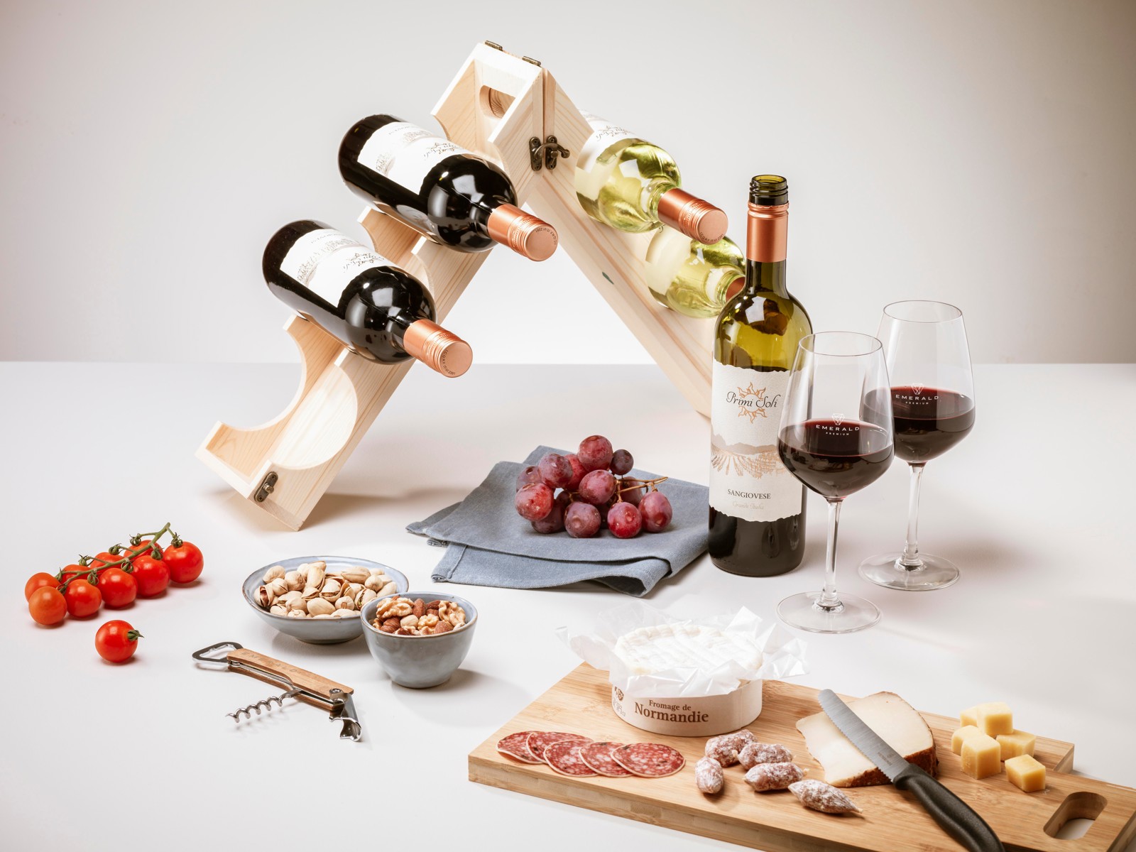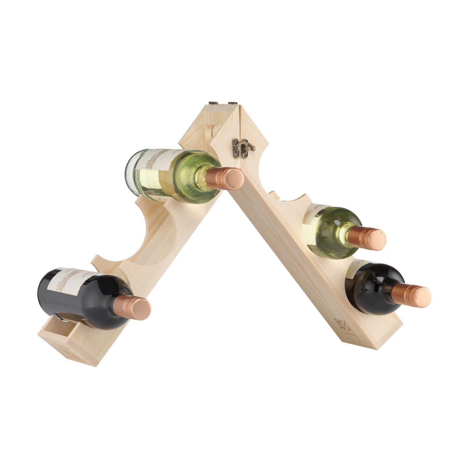 Rackpack Original: a wine gift box and a wine rack in one. Rackpack is a wooden gift box for a bottle of wine that turns into a wine storage rack. Not only does the Rackpack help your bottle stand out from other hostess gifts, but it can also be transformed from a carrier to a wooden wine rack by simply turning some hinges. It can be configured in various ways to store three, six or even 12 bottles of wine. Rackpack: a wine gift box made of FSC 100% certified wood with a new second life! • suitable for one bottle of wine • 8-10 mm FSC 100% certified pine wood • wine not included. Packed individually.
