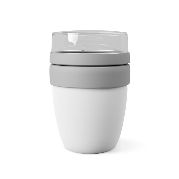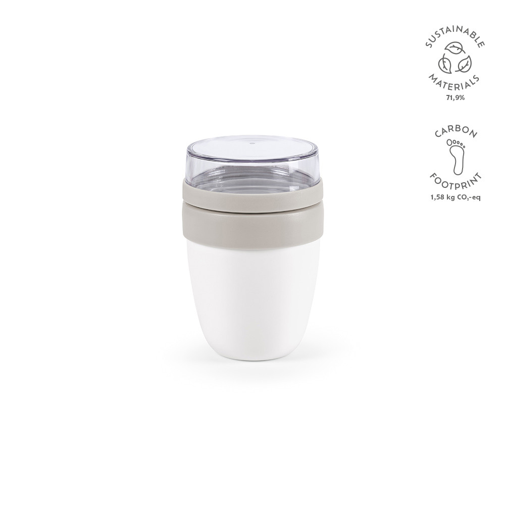 The Rembrandt 800 food flask displays 2 compartments: the bottom 530ml (430ml net) in recycled stainless steel and the 230ml (110ml net) plastic lid. Double-walled and oval-shaped perfect for soup and croutons. The leak-proof lid means you can take it anywhere. Packed inside an individual kraft box.