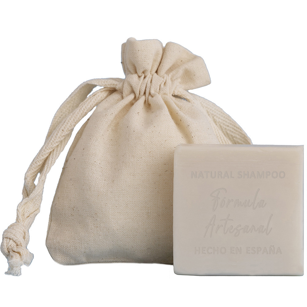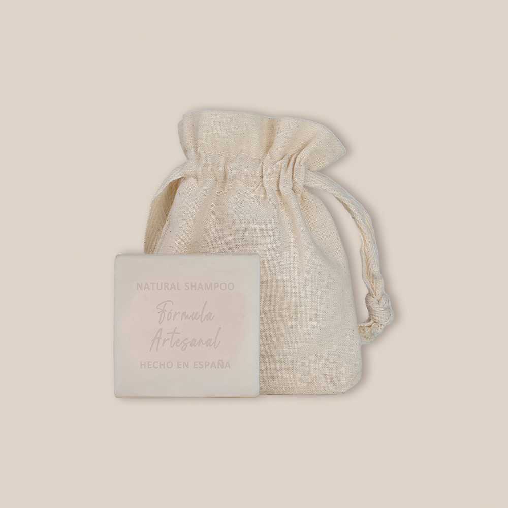 40g solid vegetable shampoo with hyacinth fragrance presented in a cotton bag. Made in Europe. Each bar is equivalent to 125 ml of liquid shampoo.