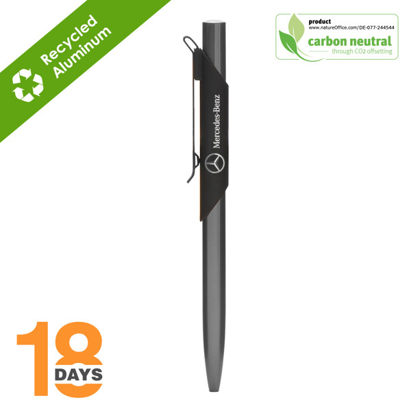 Skil, push metal ballpens Recycled aluminum & ABS German Black ink 1mm plastic refill, Cross type, 1500m