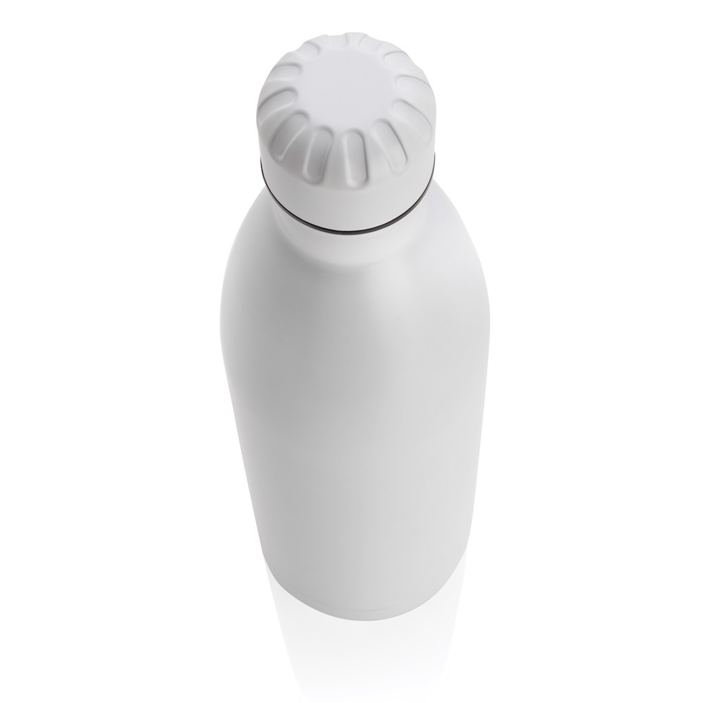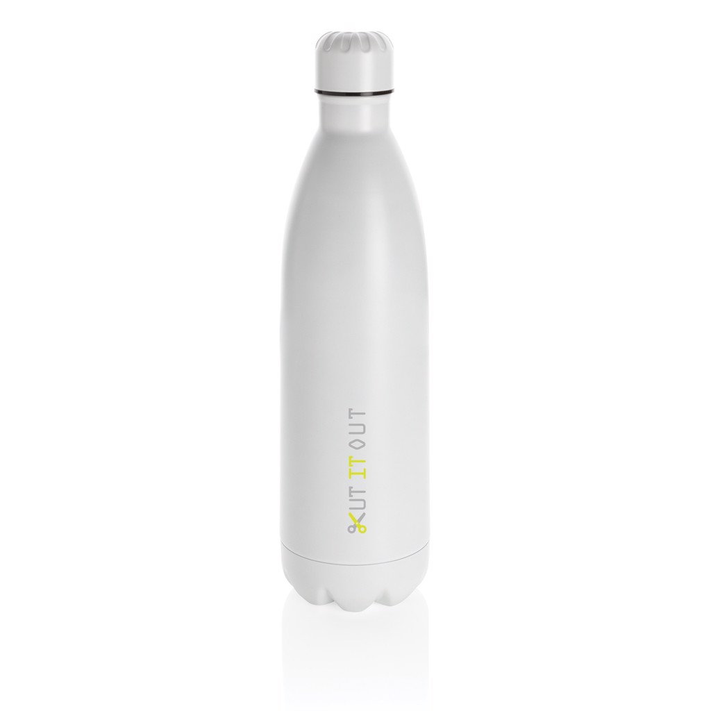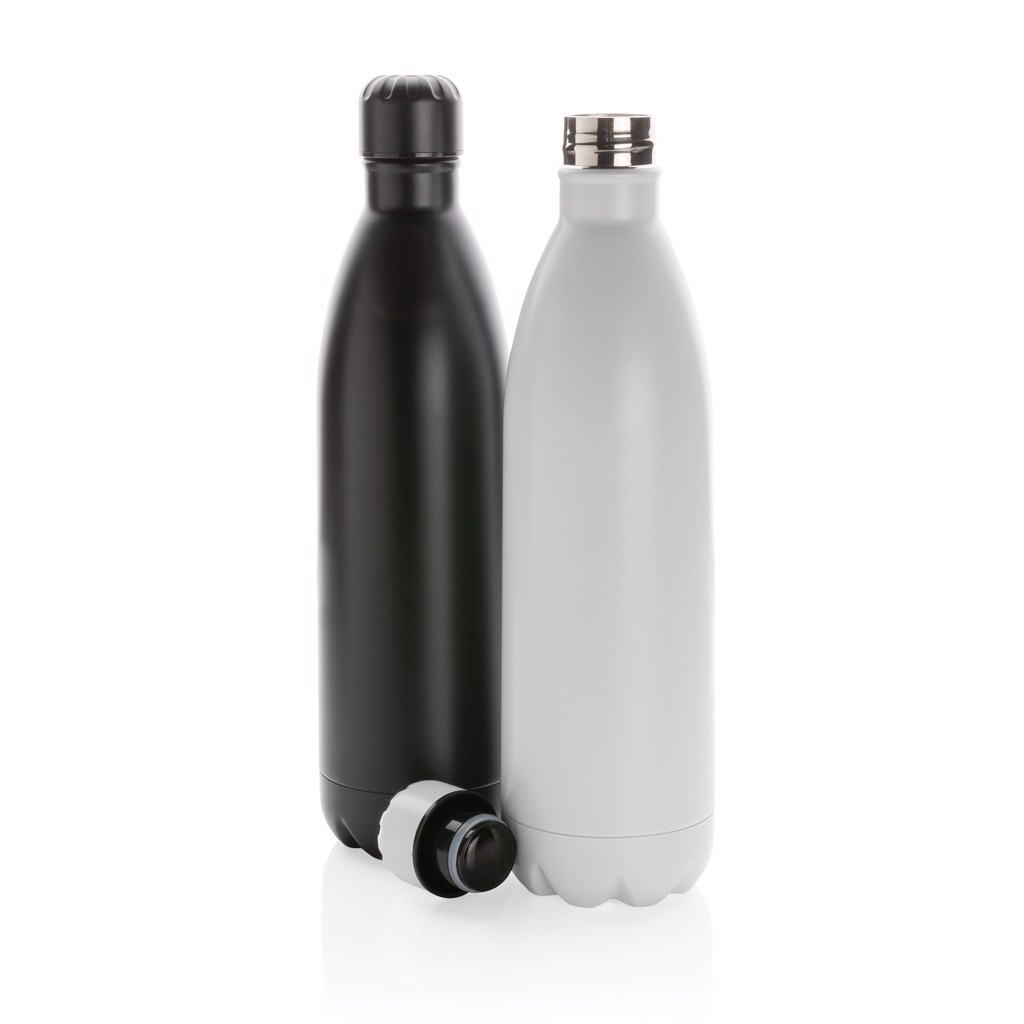 Elevate your daily water intake with this solid colour vacuum insulated stainless steel bottle. The bottle keeps chilled beverages cold for up to 15 hours and hot drinks warm for up to 5 hours. With a base that fits in most cup holders, this sleek looking water bottle will keep you hydrated on the go wherever you are. With its large capacity of 1 litre, it is ideal for a day trip.