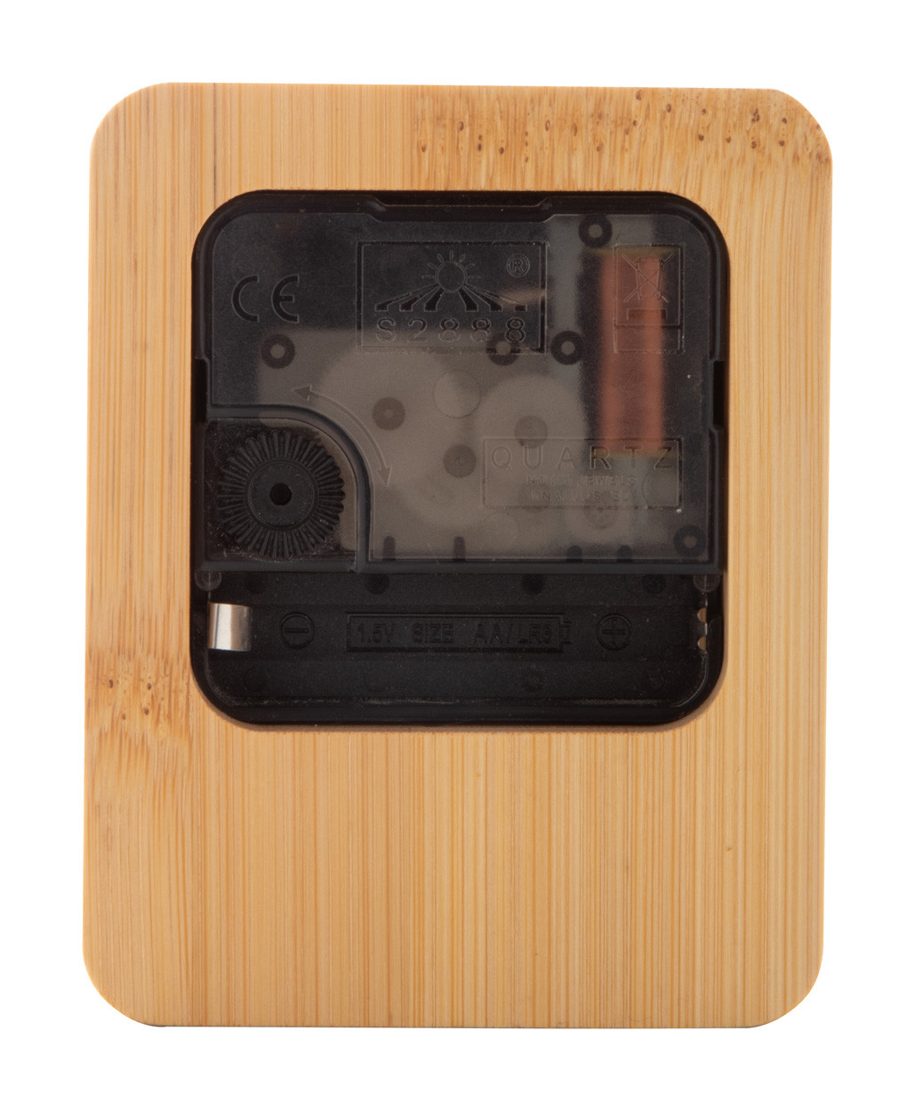 Bamboo table clock. Operates with 1 AA battery, without battery.