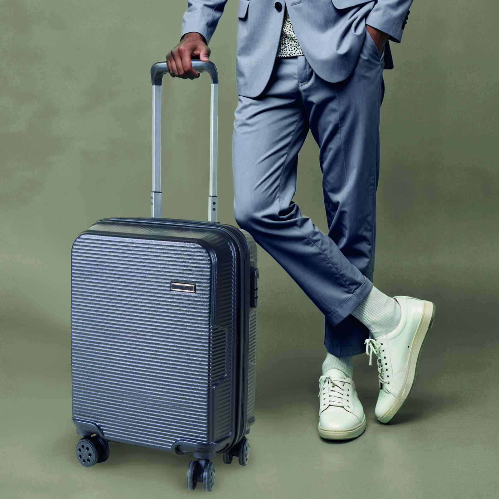 Rigid trolley with four swivel wheels and metal plate for personalisation. Includes an integrated padlock, an interior compartment and elastic fastening.