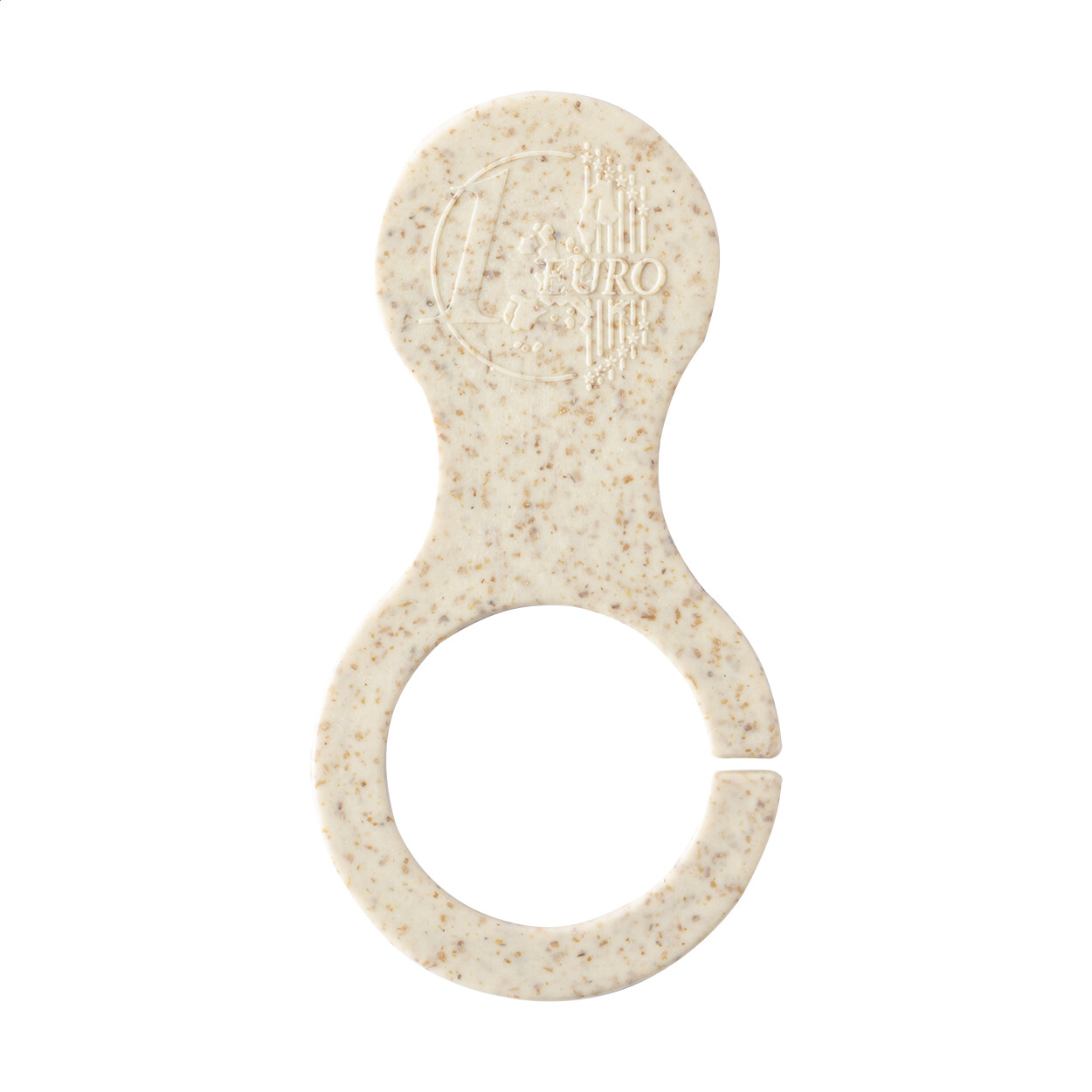 Ecological wheat straw and ABS plastic shopping trolley coin, with euro sign on one side. Only one side printable.