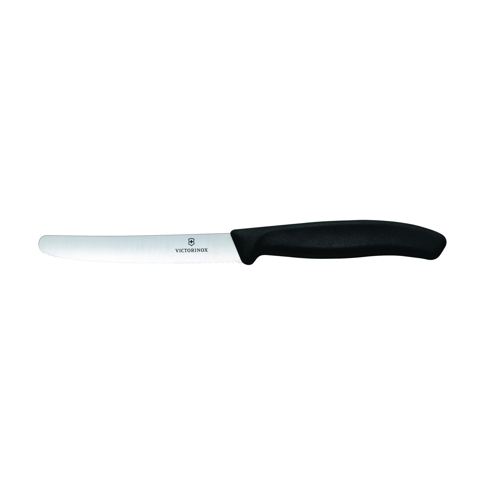 Top-quality table knife made by Victorinox Swiss Classic. The high-quality stainless steel blade (11 cm) is serrated and has a rounded edge. With plastic hilt. This knife is very comfortable to handle thanks to the ergonomic design. Can be used for eating or for any number of jobs in the kitchen. Dishwasher-safe. Exclusive Victorinox protective sleeve. This is available seperately (item no. 0692).