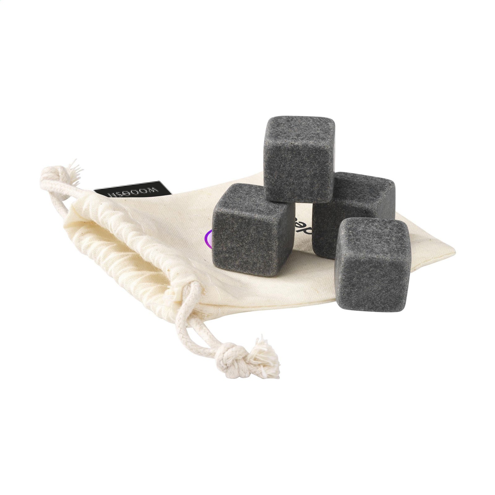 This set of 4 reusable granite ice cubes from the Wooosh brand is perfect for chilling a drink without diluting it. The cubes do not melt, so the flavour of the drink is optimally preserved. After use, the stones are easy to clean and can go straight back into the freezer for another use. A stylish, decorative and functional addition to any drink. Supplied per set in a cotton pouch.