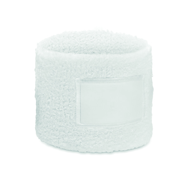 Wristband in polycotton (79% cotton/13% elastane/8%polyester) with cotton patch for printing area.