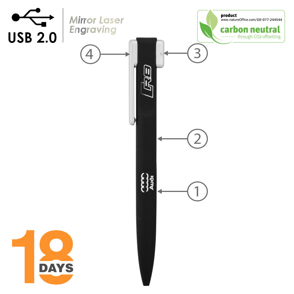 Stylo avec clé USB 2.0 intégrée. STOCK. Recycled stainless steel, ABS Télécharger fichier(s) et AutoRun Aucun Recharge plastique 1mm encre allemande noire, type Cross Capacité de mémoire 4 Go