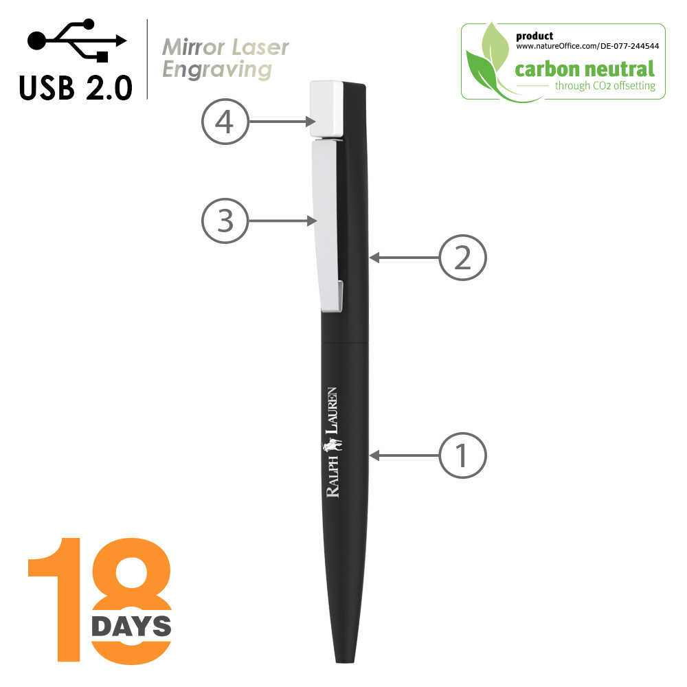 Stylo avec clé USB 2.0 intégrée. STOCK. Recycled stainless steel, ABS Télécharger fichier(s) et AutoRun Aucun Recharge plastique 1mm encre allemande noire, type Cross Capacité de mémoire 4 Go