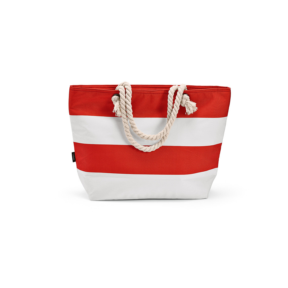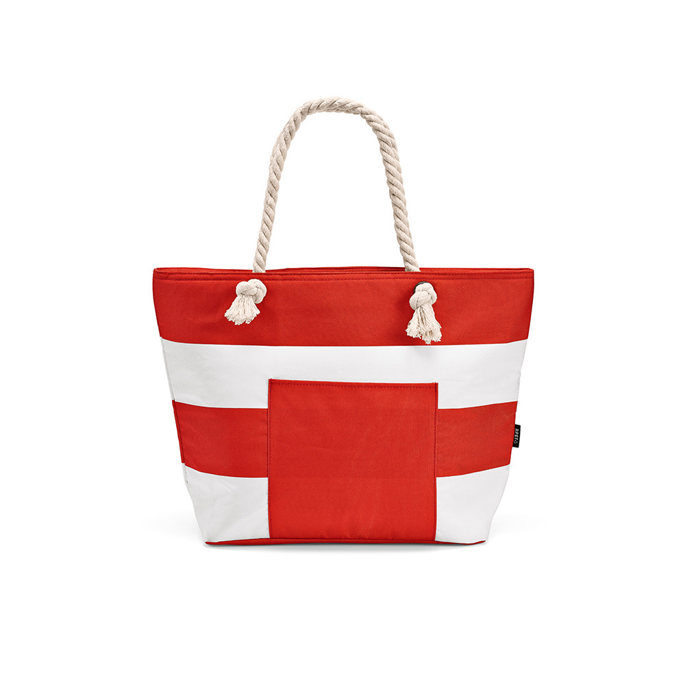 Sac isotherme Athens 15L en rPET 600D, avec une poche frontale pratique. Il se distingue par ses rayures horizontales colorées et ses poignées en coton recyclé. Une fermeture zippée sécurise le contenu. Une solution élégante et pratique pour profiter pleinement de vos moments de détente en extérieur.
