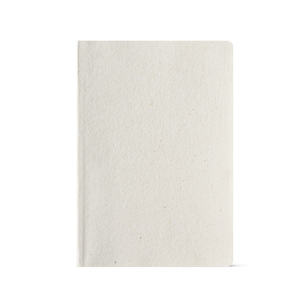 Carnet Verne A5 avec couverture souple en coton. Contient 196 pages recyclées à points (80 g/m²), avec espace pour date et numéro de page. La narration ajoute du caractère à vos créations. Livré dans une pochette kraft individuelle.