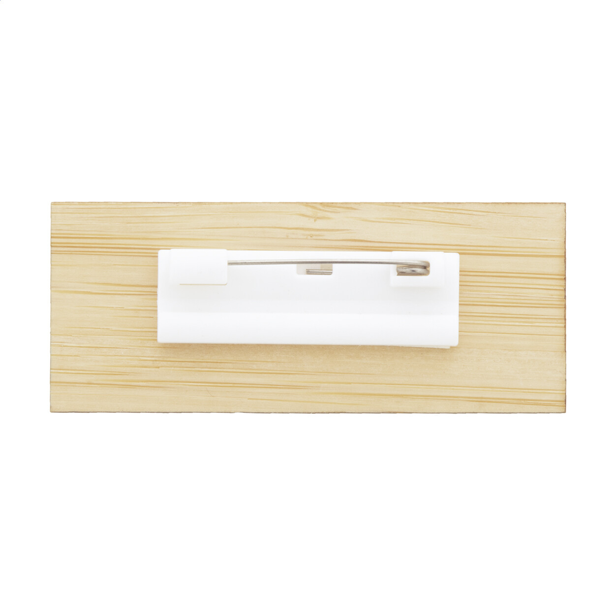 Badge identifiant en bambou avec épingle de sûreté.