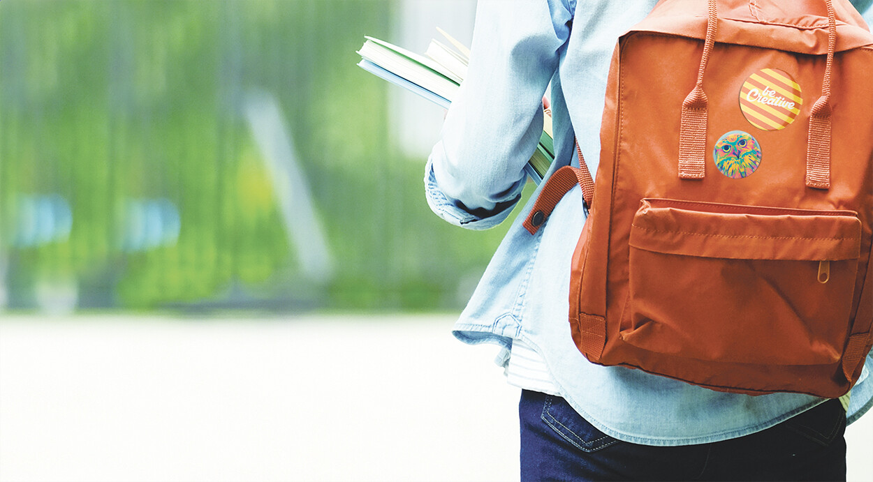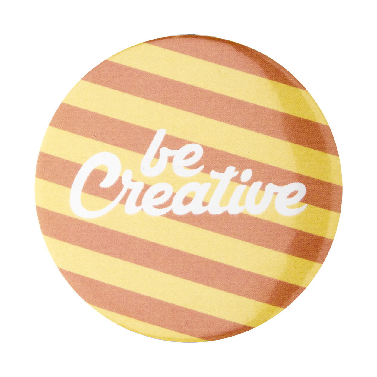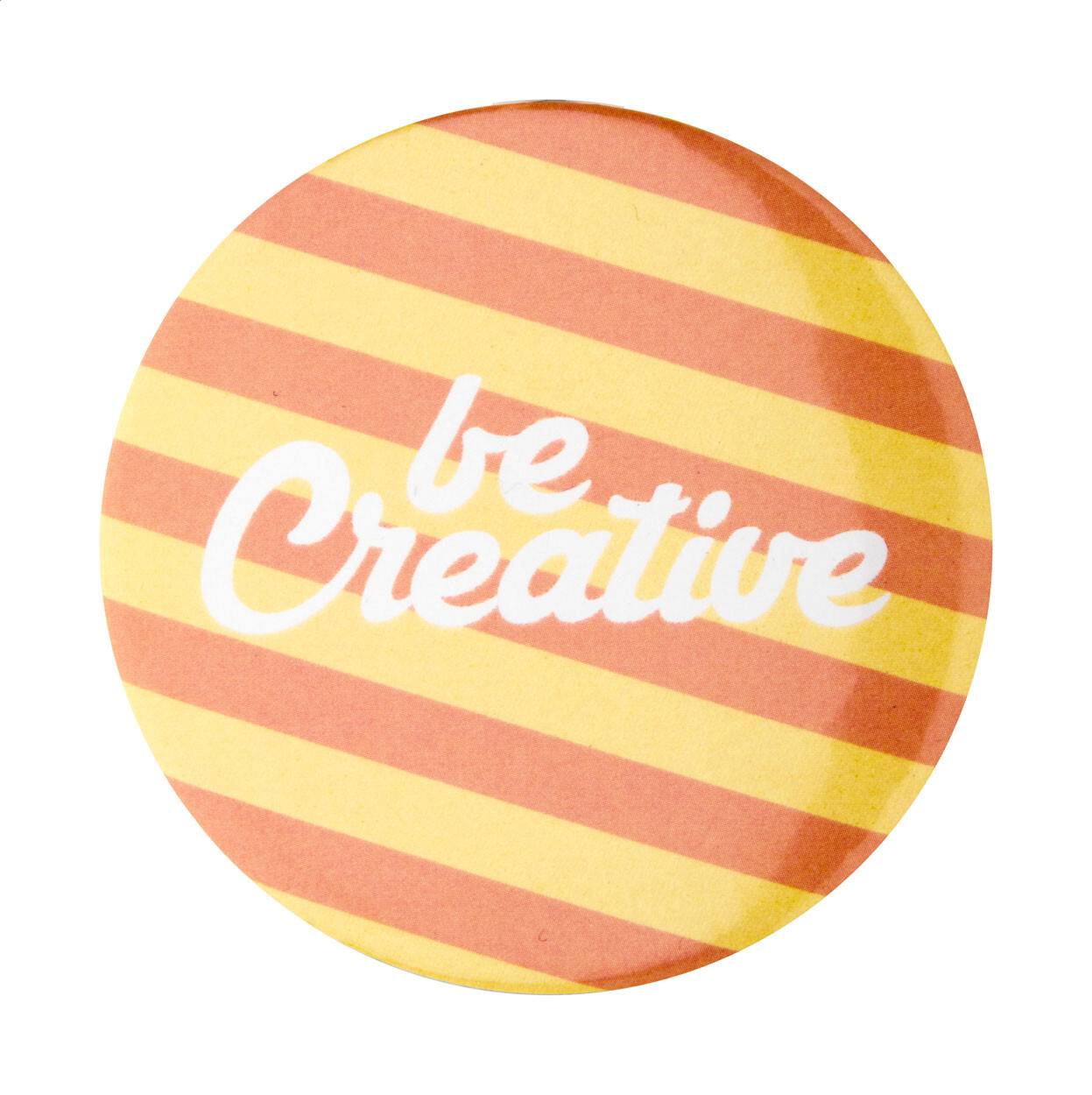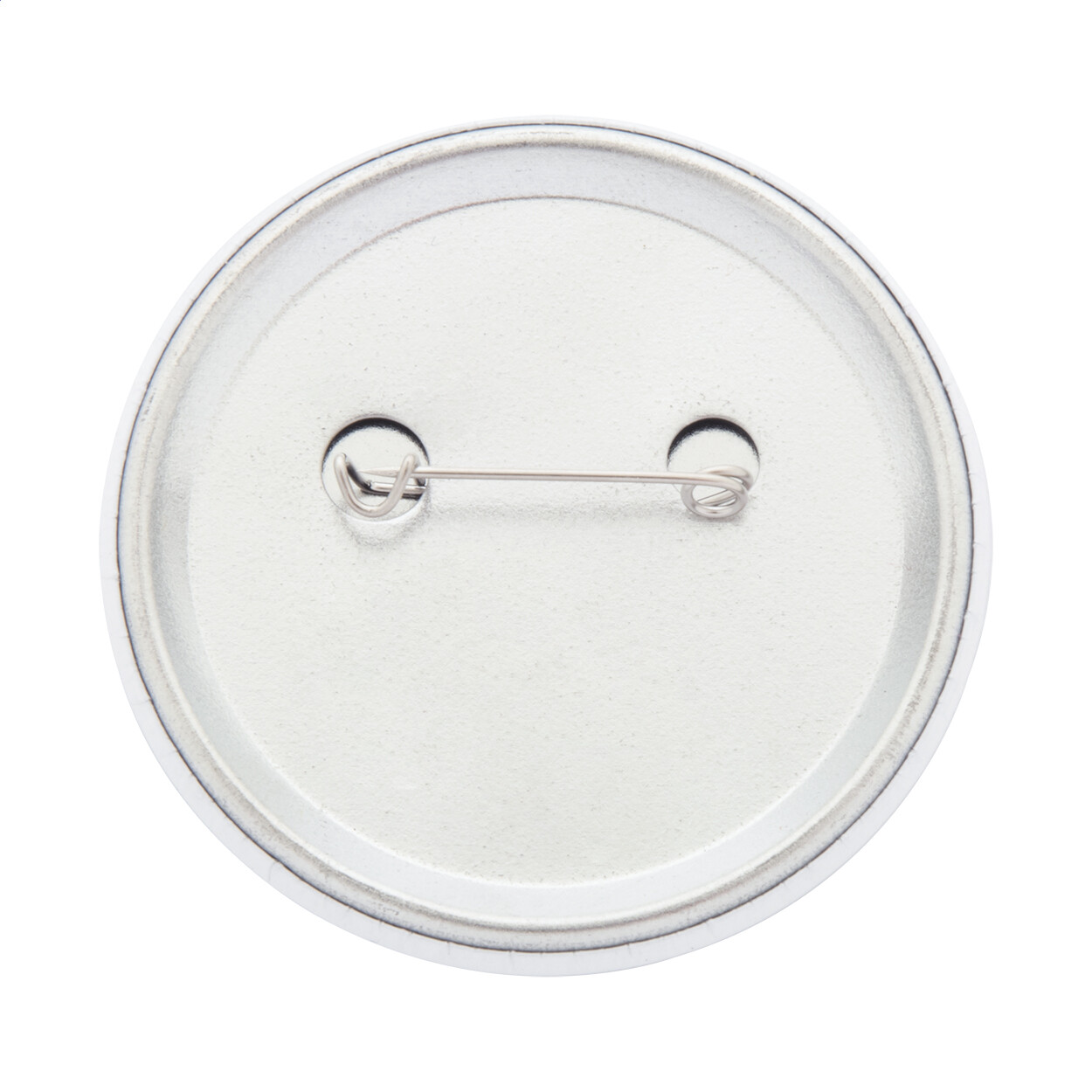 Grand badge à épingle avec insert en polyester RPET impression en quadri. Le prix inclut l´impression en sublimation. Quantité minimale : 100 pièces.