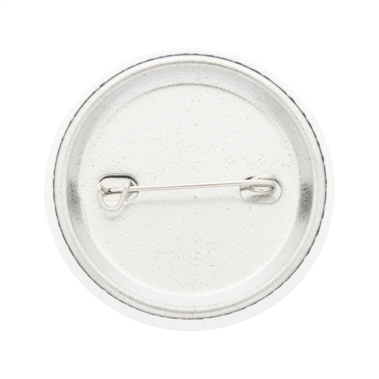 Grand badge à épingle avec insert en polyester RPET impression en quadri. Le prix inclut l´impression en sublimation. Quantité minimale : 100 pièces.